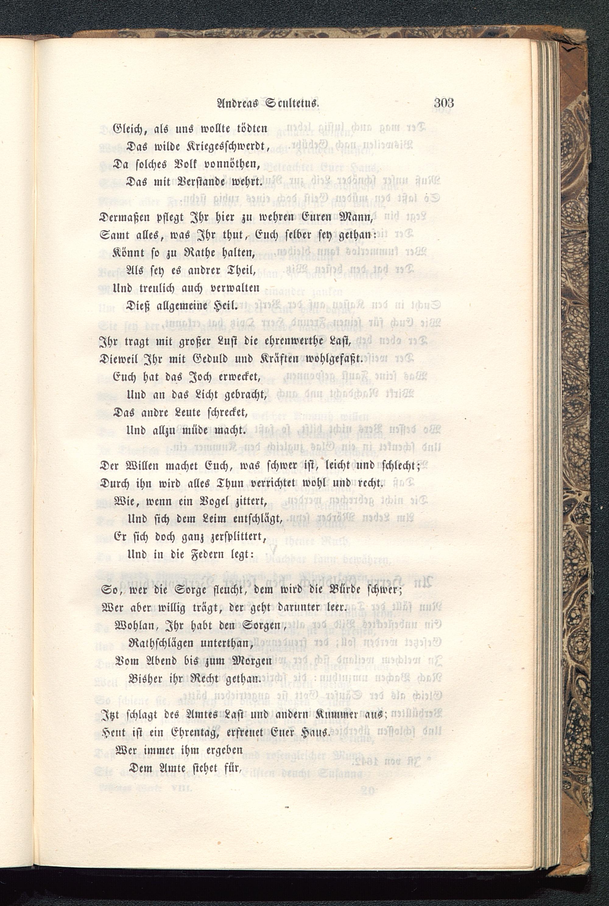 Dermaßen pflegt Ihr hier zu wehren Euren Mann,Samt alles, was Ihr thut, Euch selber sey gethan:Könnt so zu Rathe halten,Als sey eS andrer Theil,lind treulich auch verwaltenDieß allgemeine Heil.