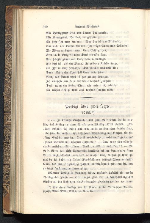 .....In Lesfmgs Briefwechsel mit Hrn. Hofr. Ebcrt las ich neu-lich, daß Lesfing in einem Briefe vom 28 Dez, 1769 schreibt: „Al-„bcrti befindet sich wohl; und was mich an ihm eben so sehr frenl,„als seine Gesundheit, ist, daß seine Versöhnung mit Goezcn ei» fal-sches Gerücht gewesen. ZZsr-ik wird daher wohl predigen, und„seinen Sermon mit nächsten einsenden." — Dies wird schwerlich je-mand verstchn. Wie kömmt Äjorik z» Alberti und Eöze»? — Hr.Hofr. Ebcrt hat diese litterarische Anekdote bei der Herausgabe seinerBriefe nicht erläutert; und dies veranlasset mich, es hier zu thun, zu-mal da ich dabei ein kleines Bruchstük von Lessings Ideen mittheilenkann, das mir seit zwanzig Jahren im Gedächtniß geblieben ist, undvielleicht sonst ganz verloren ginge........