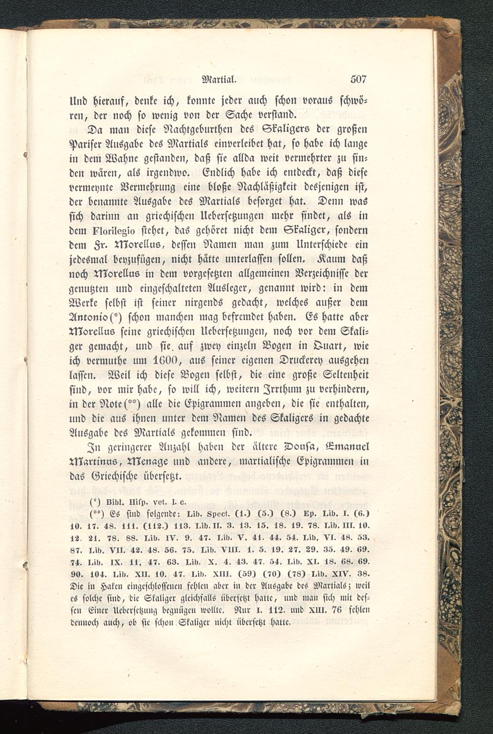 Die in Haken cingcschloffcnc» fehlen aber i» der Ausgabe des Martials, weiles solche sind, die Skaligcr gleichfalls übersetzt hatte, und man sich mit des-sen Einer Ucbcrsctzung begnüge» wollte. Nur I. 112. und XIII. 76 fehlendennoch auch, ob sie schon Skaligcr nicht iibcrscht halte.