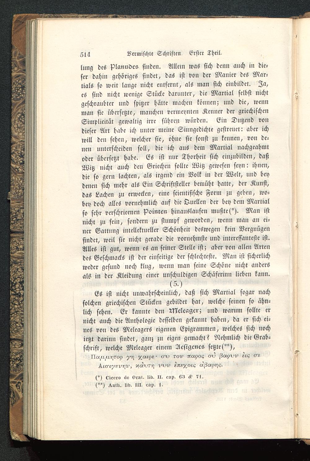 llliig des Planudcs finden. Allein was sich denn auch in die-ser dahin gehöriges findet, das ist von der Manier des Mar-lials so weit lange nicht entfernt, als man sich einbildet. Za,cs sind nicht wenige Stücke darunter, die Martial selbst nichtgeschraubter und spitzer hätte machen können; und die, wennman sie übersetzte, manchen vermcyntcn Kenner der griechischenSimplicität gewaltig irre sichren würden. Ein Dutzend vondieser Art habe ich unter meine Sinngedichte gcstrcuct: aber ichwill den sehen, welcher sie, ohne sie sonst zu kennen, von de-nen unterscheiden soll, die ich aus dem Martial nachgeahmtoder übersetzt habe. Es ist nur Thorheit sich einzubilden, daßWitz nicht auch den Griechen sollte Witz gewesen seyn: ihnen,die so gern lachten, als irgend ein Volk in der Welt, und beydenen sich mehr als Ein Schriftsteller bemüht hatte, der Kunst,das Lachen zu erwecken, eine scientisische Form zu geben, wo-bey doch alles vornehmlich auf die Quellen der bey dem Martialso sehr verschrieenen Pointen hinauslaufen mußtet). Man istnicht zu fein, sondern zu stumpf geworden, wenn man an ei-ner Gattung intellektueller Schönheit deswegen kein Vergnügenfindet, weil sie nicht gerade die vornehmste und interessanteste ist.Alles ist gut, wenn cs an seiner Stelle ist; aber von allen Artendes Geschmacks ist der einseitige der schlechteste. Man ist sicherlichweder gesund noch klug, wenn man seine Schöne nicht andersals in der Kleidung einer unschuldigen Schäferinn lieben kann.