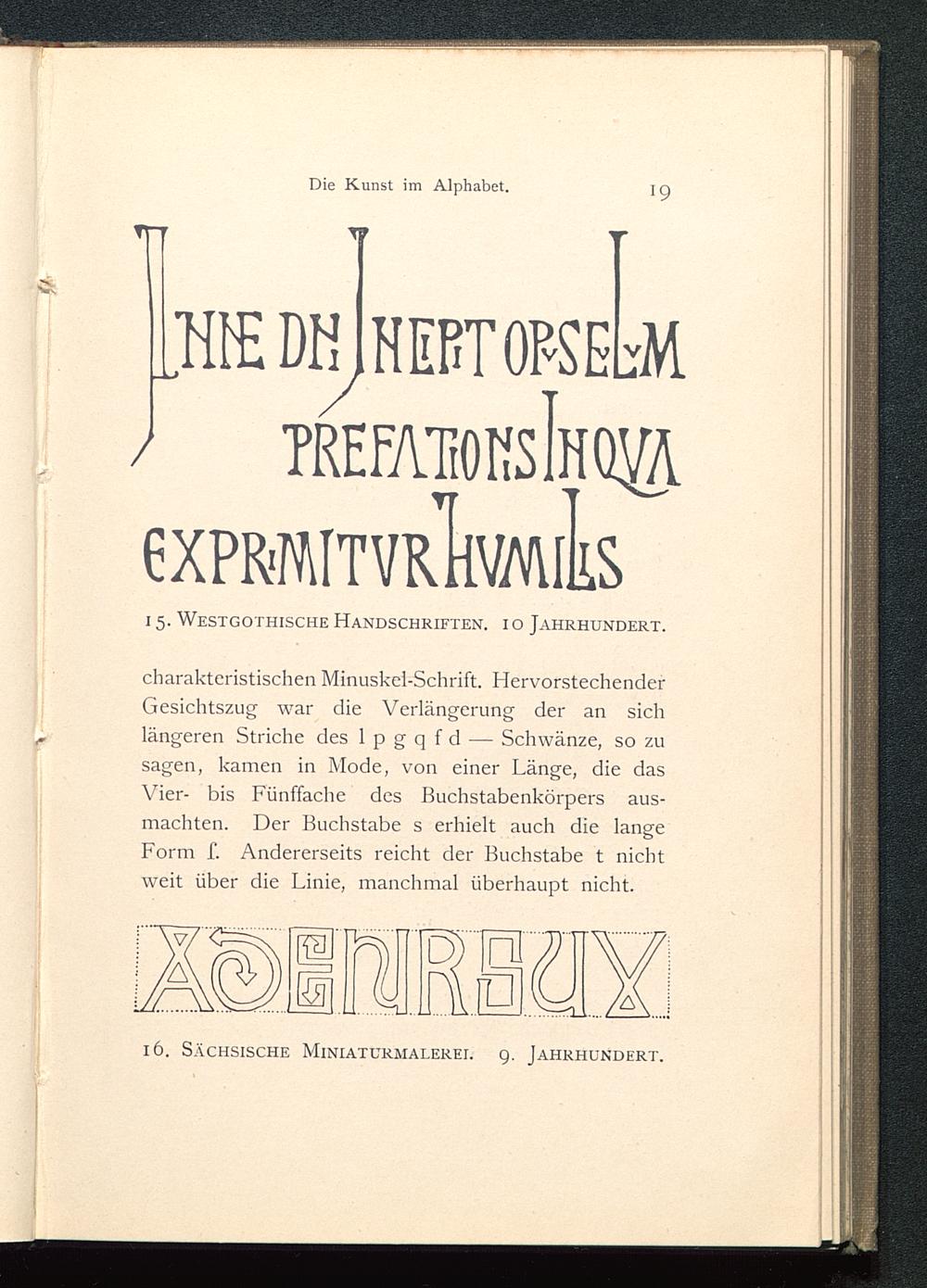charakteristischen Minuskel-Schrift. HervorstechenderGesichtszug war die Verlängerung der an sichlängeren Striche des 1 p g q f d — Schwänze, so zusagen, kamen in Mode, von einer Länge, die dasVier- bis Fünffache des Buchstabenkörpers aus-machten. Der Buchstabe s erhielt auch die langeForm s. Andererseits reicht der Buchstabe t nichtweit über die Linie, manchmal überhaupt nicht.