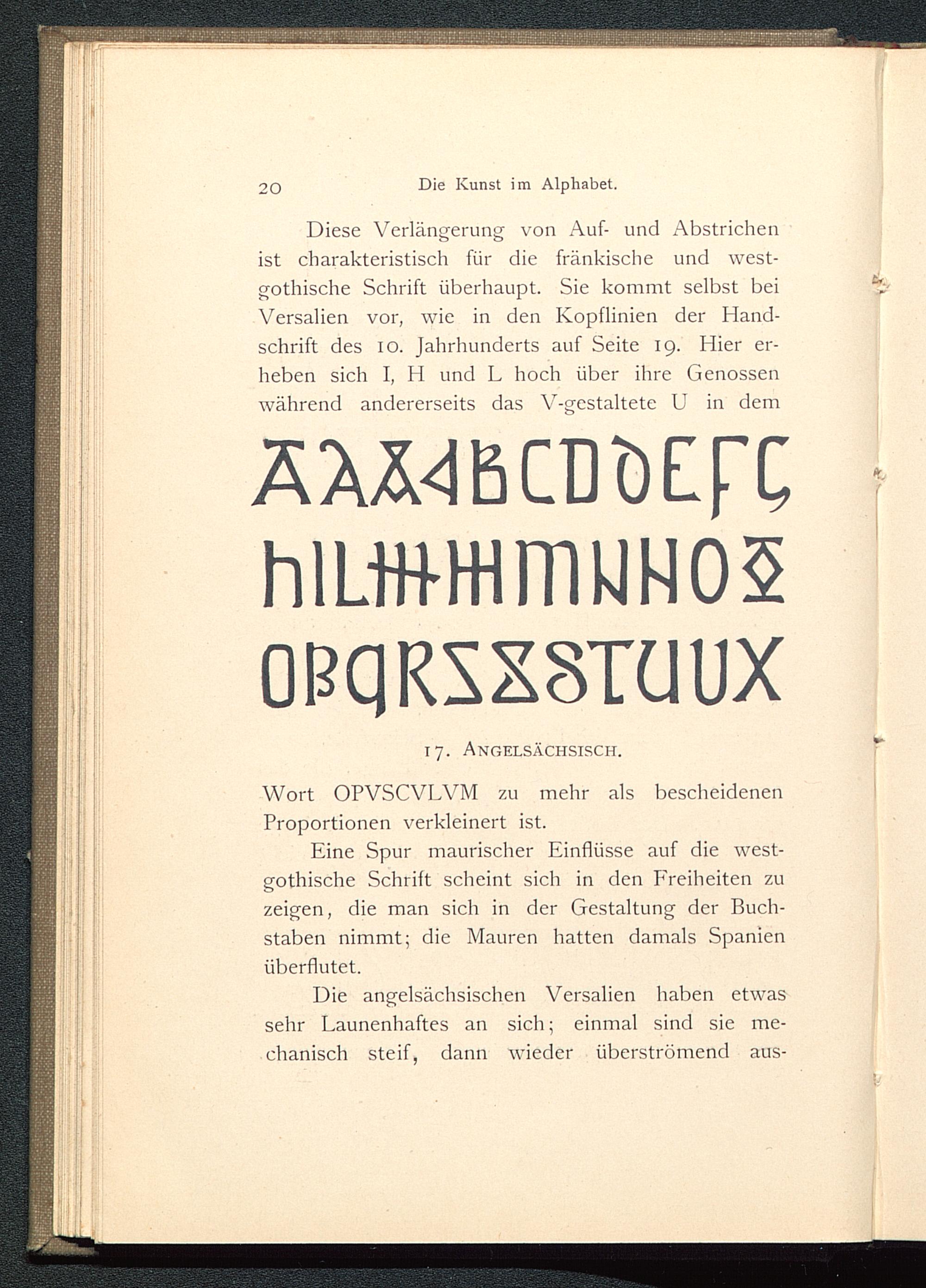 Die angelsächsischen Versalien haben etwassehr Launenhaftes an sich; einmal sind sie me-chanisch steif, dann wieder überströmend aus-