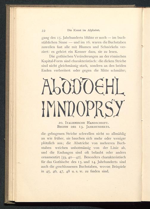 Die gothischen Veränderungen an der römischenKapital-Form sind charakteristisch: die dicken Strichesind nicht gleichmässig stark, sondern an den beidenEnden verbreitert oder gegen die Mitte schmäler;