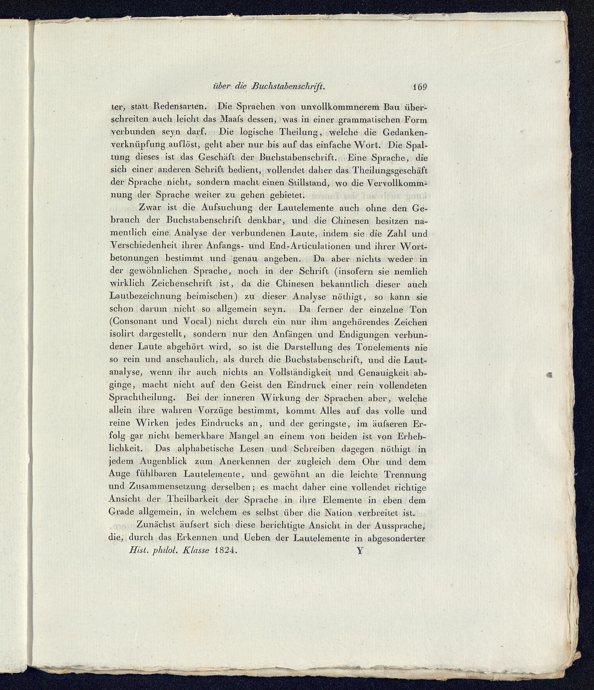Zunächst äufsert sich diese berichtigte Ansicht in der Aussprache,die, durch das Erkennen und Ueben der Lautelemenle in abgesonderterHist. philol. Klasse 1824. Y