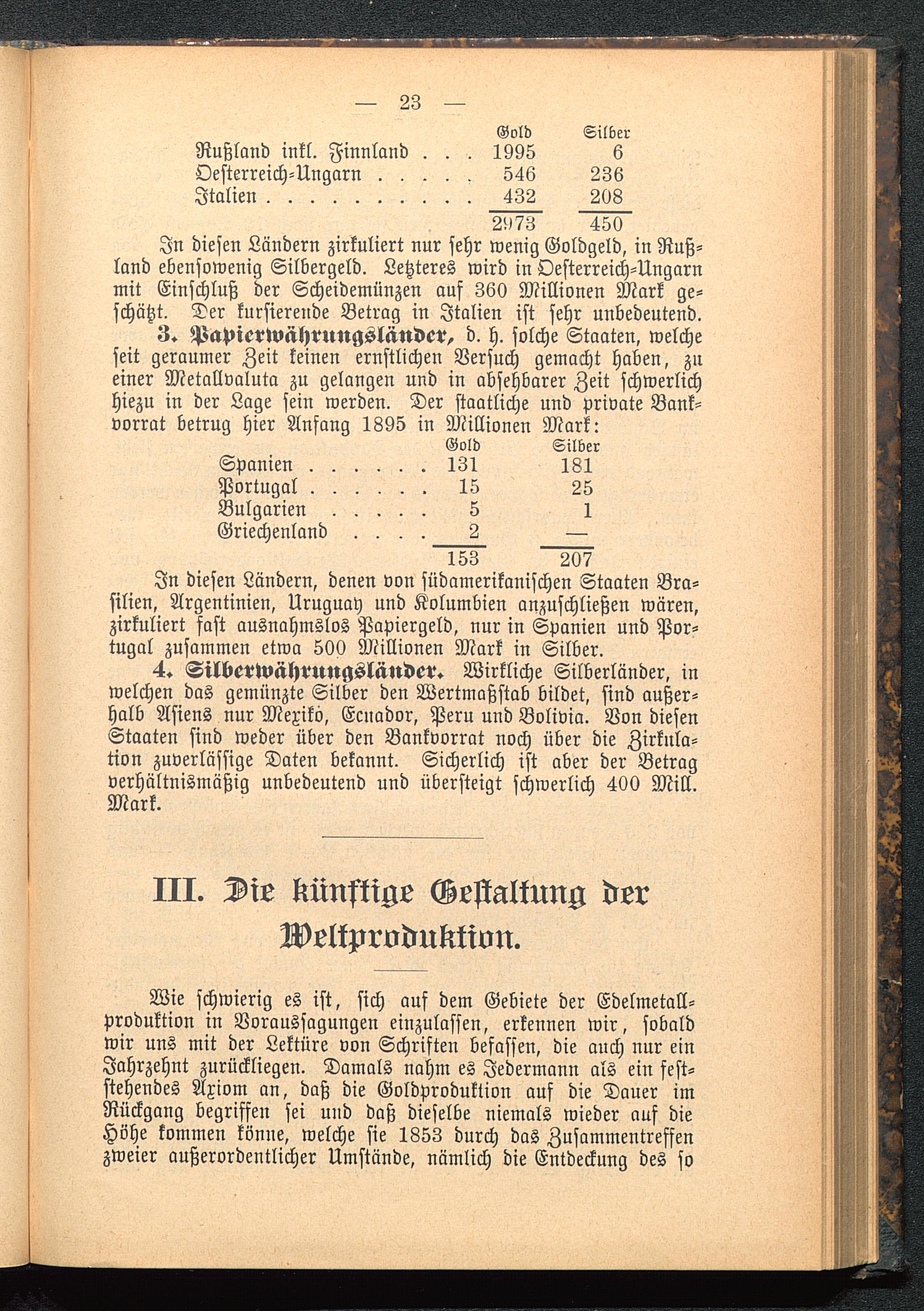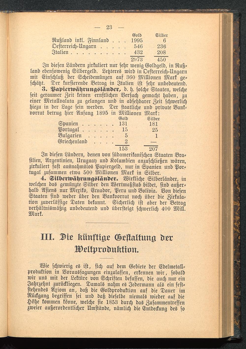 153 207In diesen Ländern, denen von südamerikanischen Staaten Bra-silien , Argentinien, Uruguay und Kolumbien anzuschließen wären,zirkuliert fast ausnahmslos Papiergeld, nur in Spanien und Por-tugal zusammen etwa 500 Millionen Mark in Silber.