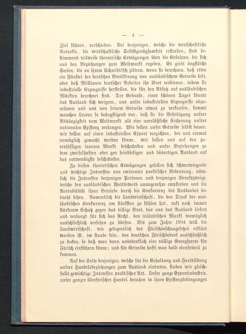 Zu diesen theoretischen Erwägungen gesellen sich schwerwiegendeund wichtige Interessen von eminenter praktischer Bedeutung, näm-lich die Interessen derjenigen Personen und derjenigen Berufszwcige.welche den ausländischen Wettbewerb unangenehm empfinden und dieRentabilität ihrer Betriebe durch die Konkurrenz des Auslandes be-droht sehen. Namentlich die Landwirtschaft, die den Druck der aus-ländischen Konkurrenz am stärksten zu fühlen hat, ruft nach immerstärkerem Schutz gegen das billige Brot, das uns das Ausland liefertund verlangt für sich das Recht, den inländischen Markt womöglichausschließlich versehen zu dürsen. Bis zum Jahre 1904 will dieLandwirtschaft, wie gelegentlich des Fleischbeschaugesetzes erklärtworden ist, im stände sein, den deutschen Fleischbedarf ausschließlichzu decken, so daß man dann unbedenklich eine völlige Grenzsperre fürFleisch einführen könne; und für Getreide hofft man bald ebensoweit zukommen.
