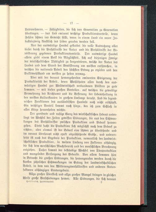 Nur der auswärtige Handel gestattet die volle Ausnutzung allerdieser durch die Verhältnisse der Natur und die Verhältnisse der Be-völkerung gegebenen Produktionsvorteile. Der auswärtige Handelallein giebt einem Volk die Möglichkeit, sich auf diejenigen Zweigeder wirtschaftlichen Thätigkeit zu konzentrieren, welche der Natur desLandes und dem Stand der Bevölkerung am meisten entsprechen, inwelchen die nationale Arbeit den höchsten Ertrag zu erzielen und denVolkswohlstand am meisten zu heben vermag.