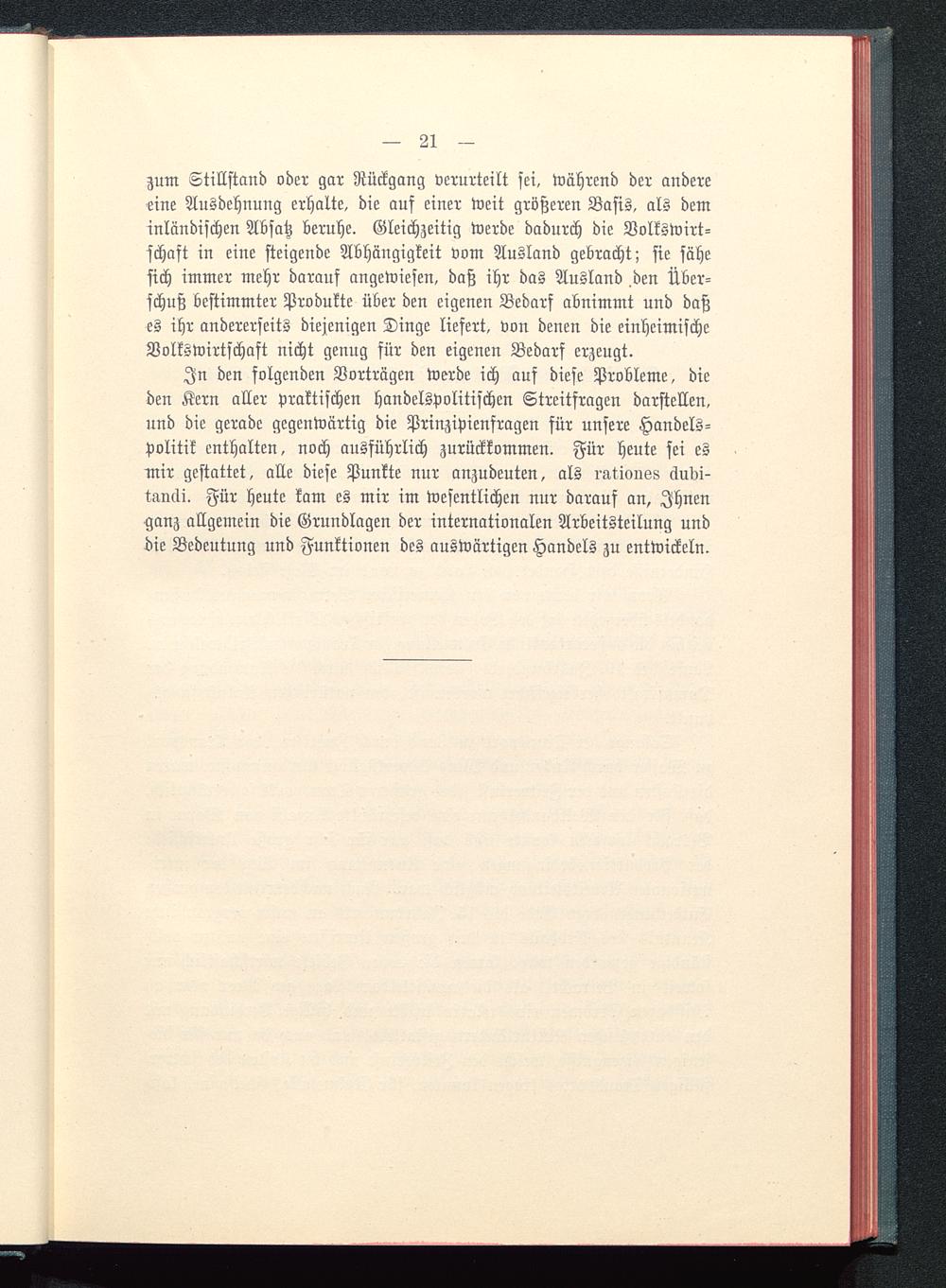 In den folgenden Vorträgen werde ich auf diese Probleme, dieden Kern aller praktischen handelspolitischen Streitfragen darstellen,und die gerade gegenwärtig die Prinzipienfragen für unsere Handels-politik enthalten, noch ausführlich zurückkommen. Für heute sei esmir gestattet, alle diese Punkte nur anzudeuten, als rationss äudi-tanäi. Für heute kam es mir im wesentlichen nur darauf an, Ihnenganz allgemein die Grundlagen der internationalen Arbeitsteilung unddie Bedeutung und Funktionen des auswärtigen Handels zu entwickeln.