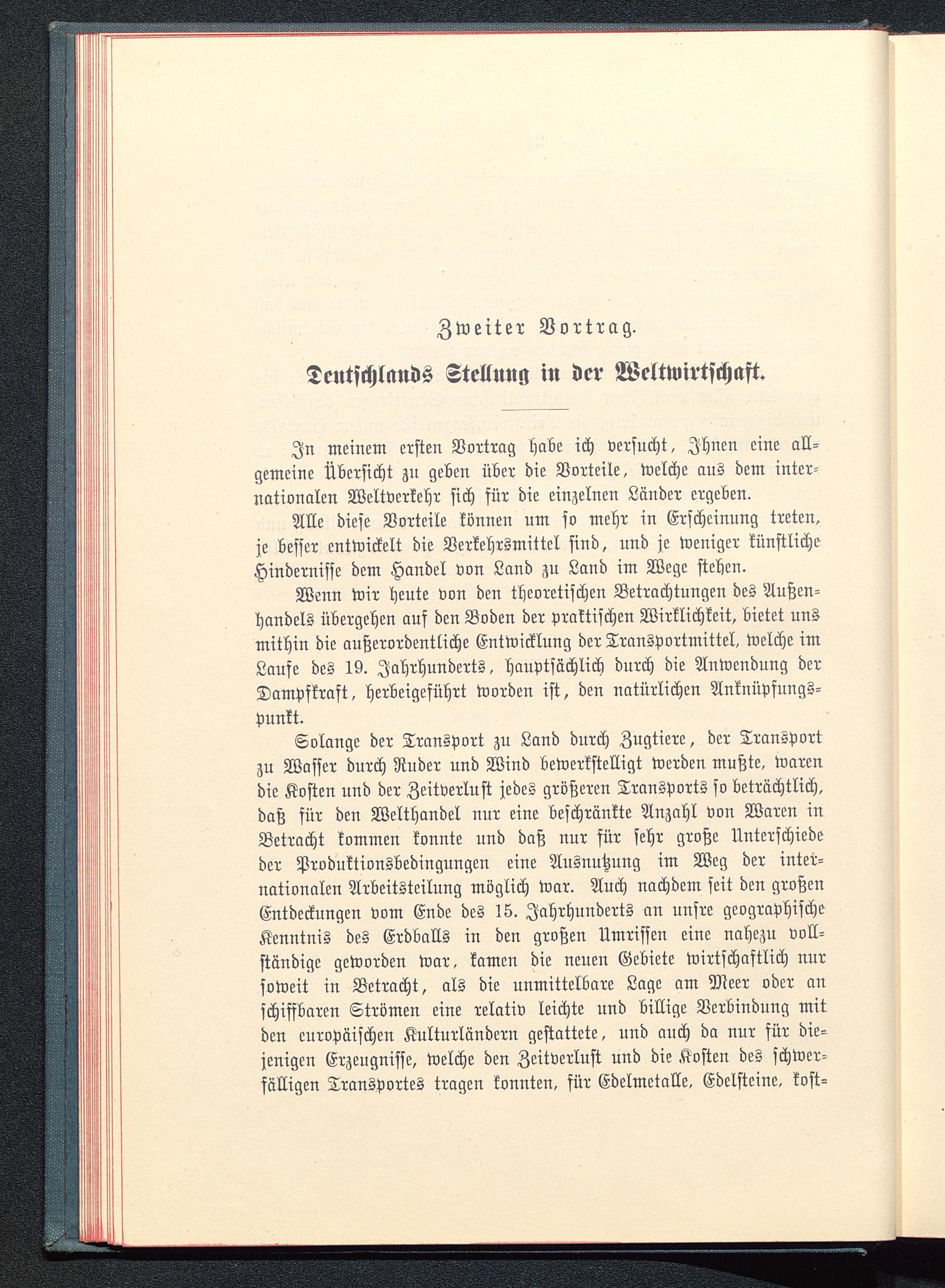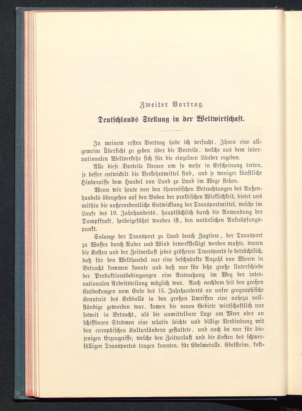 In meinem ersten Vortrag habe ich versucht, Ihnen eine all-gemeine Übersicht zu geben über die Vorteile, welche aus dem inter-nationalen Weltverkehr sich für die einzelnen Länder ergeben.