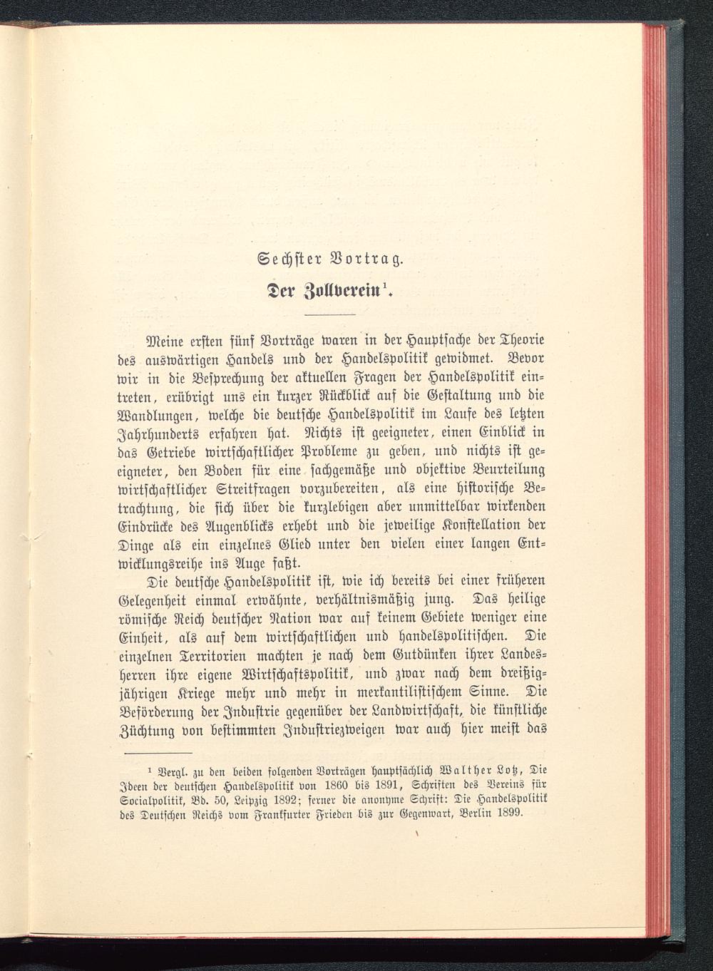 i Vergl. zu den beiden folgenden Vortrügen hauptsächlich Walt her Lotz, DieIdeen der deutschen Handelspolitik von 1860 bis 1891, Schriften des Vereins fürSocialpolitik, Bd. 50, Leipzig 1832; ferner die anonyme Schrift: Die Handelspolitikdes Teutschen Reichs vom Frankfurter Frieden bis zur Gegenwart, Berlin 1899.