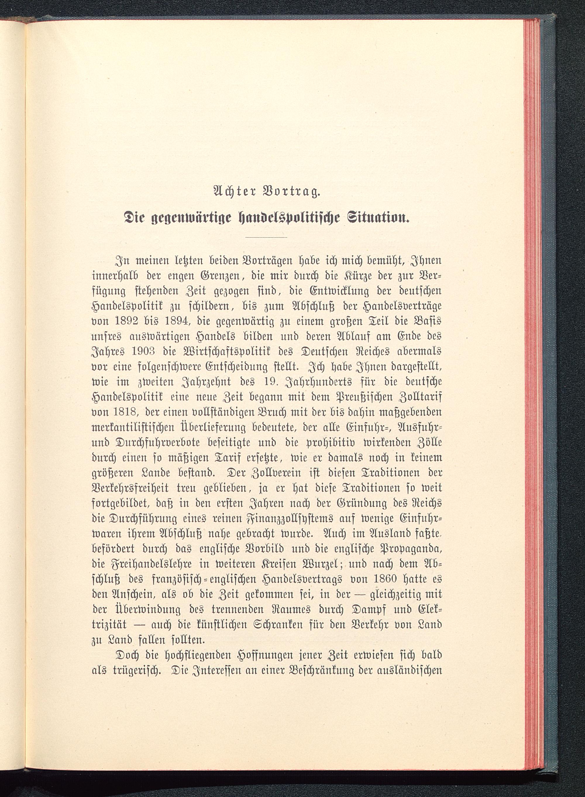 Achter Vortrag.Die gegenwärtige handelspolitische Situation.