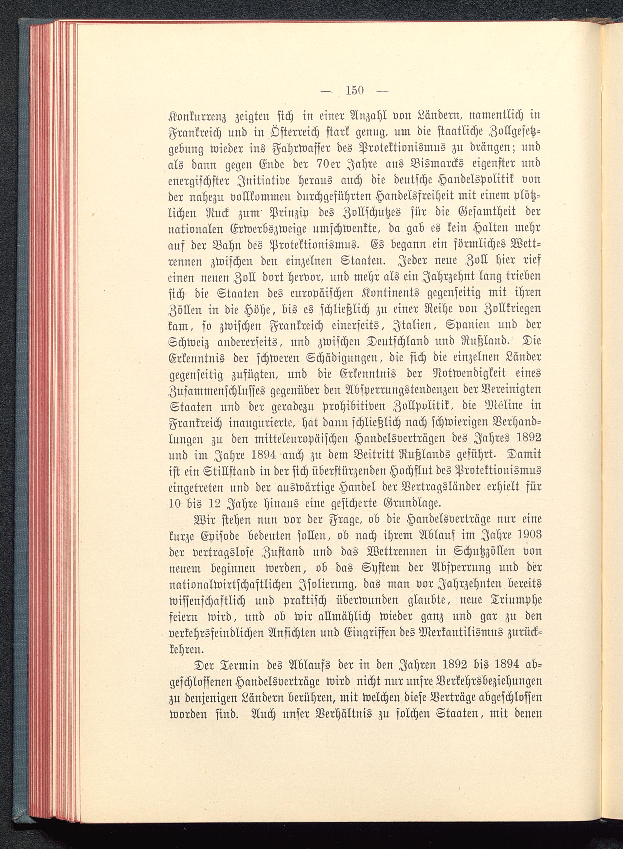 Wir stehen nun vor der Frage, ob die Handelsverträge nur einekurze Episode bedeuten sollen, ob nach ihrem Ablauf im Jahre 1903der vertragslose Zustand und das Wettrennen in Schutzzöllen vonneuem beginnen werden, ob das System der Absperrung und dernationalwirtschaftlichen Isolierung, das mau vor Jahrzehnten bereitswissenschaftlich und praktisch überwunden glaubte, neue Triumphefeiern wird, und ob wir allmählich wieder ganz und gar zu denverkehrsfeindlichen Ansichten und Eingriffen des Merkantilismus zurück-kehren.