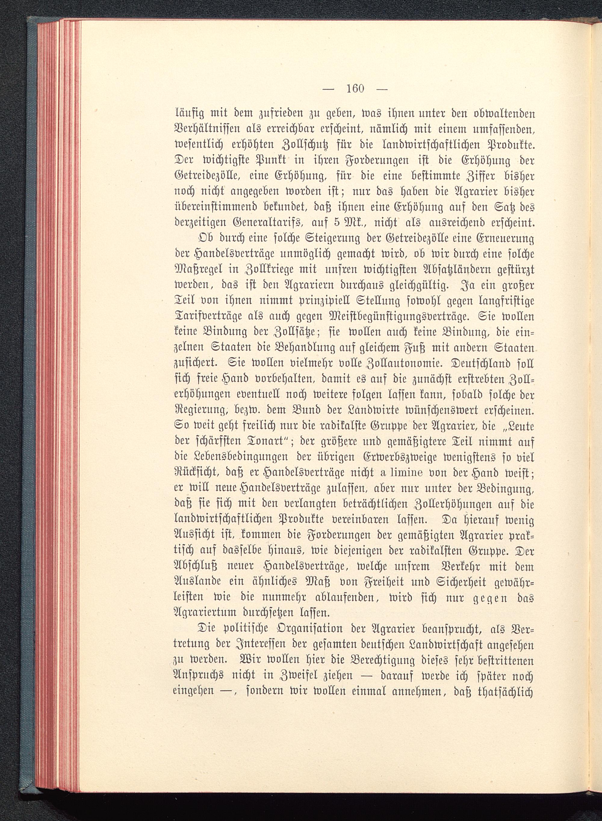 läufig mit dem zufrieden zu geben, was ihnen unter den obwaltendenVerhältnissen als erreichbar erscheint, nämlich mit einem umfassenden,wesentlich erhöhten Zollschutz für die landwirtschaftlichen Produkte.Der wichtigste Punkt in ihren Forderungen ist die Erhöhung derGetreidezölle, eine Erhöhung, für die eine bestimmte Ziffer bishernoch nicht angegeben worden ist; nur das haben die Agrarier bisherübereinstimmend bekundet, daß ihnen eine Erhöhung auf den Satz desderzeitigen Generaltarifs, auf 5 Mk„ nicht als ausreichend erscheint.