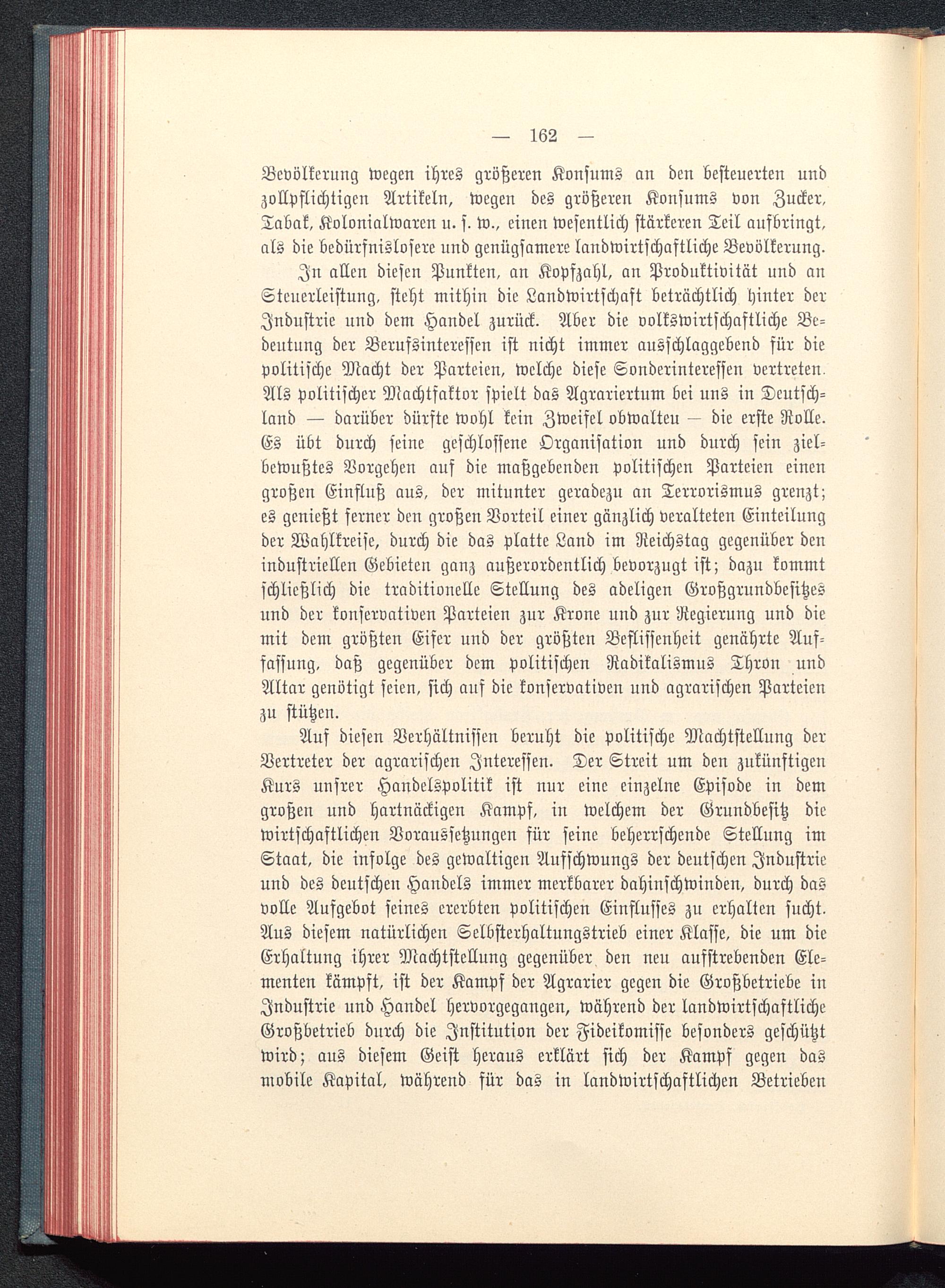 Auf diesen Verhältnissen beruht die politische Machtstellung derVertreter der agrarischen Interessen. Der Streit um den zukünftigenKurs unsrer Handelspolitik ist nur eine einzelne Episode in demgroßen und hartnäckigen Kampf, in welchem der Grundbesitz diewirtschaftlichen Voraussetzungen sür seine beherrschende Stellung imStaat, die infolge des gewaltigen Aufschwungs der deutschen Industrieund des deutscheu Handels immer merkbarer dahinschwinden, durch dasvolle Aufgebot seines ererbten politischen Einflusses zu erhalten sucht.Aus diesem natürlichen Selbsterhaltungstrieb einer Klasse, die um dieErhaltung ihrer Machtstellung gegenüber den neu aufstrebenden Ele-menten kämpft, ist der Kampf der Agrarier gegen die Großbetriebe inIndustrie und Handel hervorgegangen, während der landwirtschaftlicheGroßbetrieb durch die Institution der Fideikomisse besonders geschütztwird; aus diesem Geist heraus erklärt sich der Kampf gegen dasmobile Kapital, während sür das in landwirtschaftlichen Betrieben