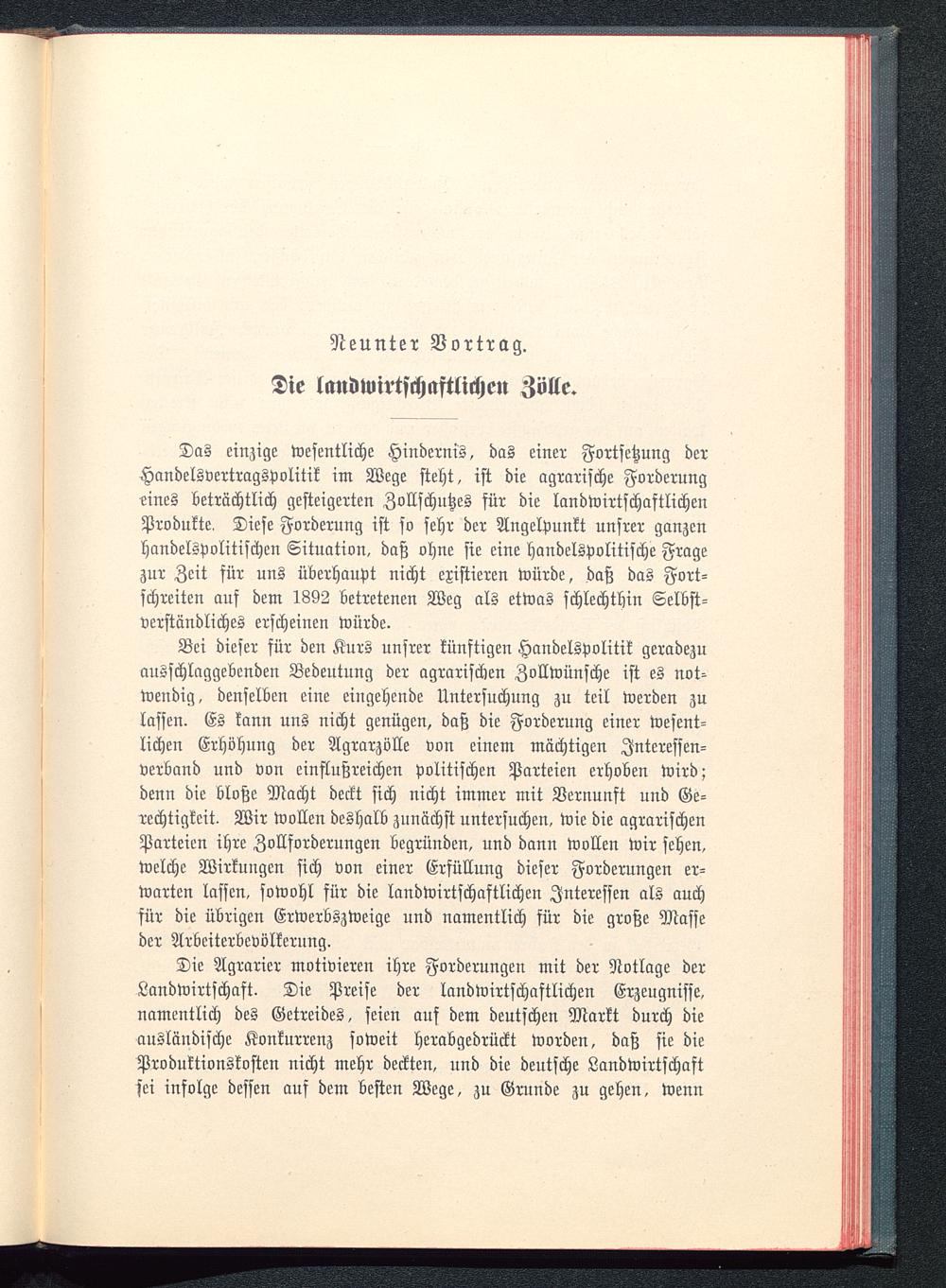Neunter Vortrag.Die landwirtschaftlichen Zölle.