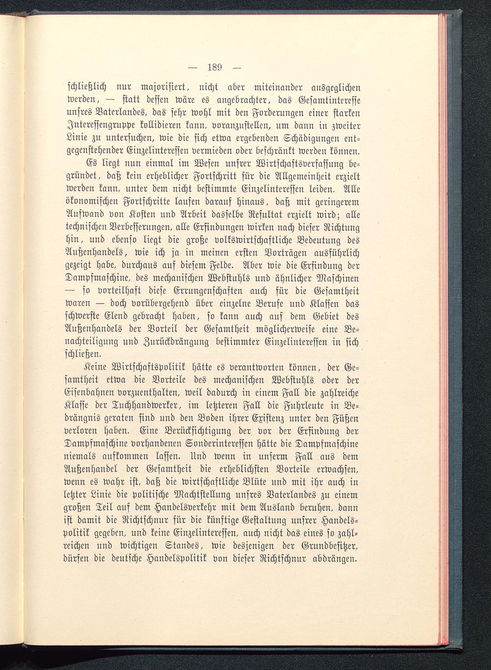 Es liegt nun einmal im Wesen unsrer Wirtschaftsverfassung be-gründet, daß kein erheblicher Fortschritt für die Allgemeinheit erzieltwerden kann, unter dem nicht bestimmte Einzclinteressen leiden. Alleökonomischen Fortschritte laufen darauf hinaus, daß mit geringeremAufwand von Kosten uud Arbeit dasselbe Resultat erzielt wird; alletechnischen Verbcsserungen, alle Erfindungen wirken nach dieser Richtunghin, und ebenso liegt die große volkswirtschaftliche Bedeutung desAußenhandels, wie ich ja in meinen ersten Vorträgen ausführlichgezeigt habe, durchaus auf diesem Felde. Aber wie die Erfindung derDampfmaschine, des mechanischen Webstuhls und ähnlicher Maschinen— so vorteilhaft diese Errungenschaften auch für die Gesamtheitwaren — doch vorübergehend über einzelne Berufe und Klassen dasschwerste Elend gebracht haben, so kann auch auf dem Gebiet desAußenhandels der Vorteil der Gesamtheit möglicherweise eine Be-nachteiligung und Zurückdrängung bestimmter Einzelinteressen in sichschließen.