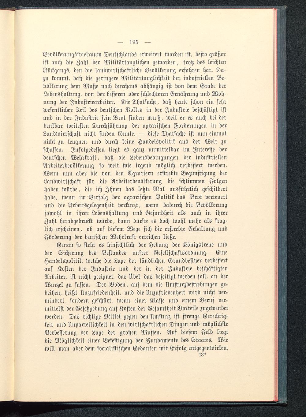 Genau so steht es hinsichtlich der Hebung der Königstreue undder Sicherung des Bestandes unsrer Gesellschaftsordnung. EineHandelspolitik, welche die Lage der ländlichen Grundbesitzer verbessertauf Kosten der Industrie nnd der in der Industrie beschäftigtenArbeiter, ist nicht geeignet, das Übel, das beseitigt werden soll, an derWurzel zu fassen. Der Boden, auf dem die Umsturzbestrebungen ge-deihen, heißt Unzufriedenheit, und die Unzufriedenheit wird nicht ver-mindert, sondern geschürt, wenn einer Klasse und einem Beruf ver-mittelst der Gesetzgebung auf Kosten der Gesamtheit Vorteile zugewendetwerden. Das richtige Mittel gegen den Umsturz ist strenge Gerechtig-keit und Unparteilichkeit in den wirtschaftlichen Dingen und möglichsteVerbesserung der Lage der großen Massen. Auf diesem Feld liegtdie Möglichkeit einer Befestigung der Fundamente des Staates. Wie