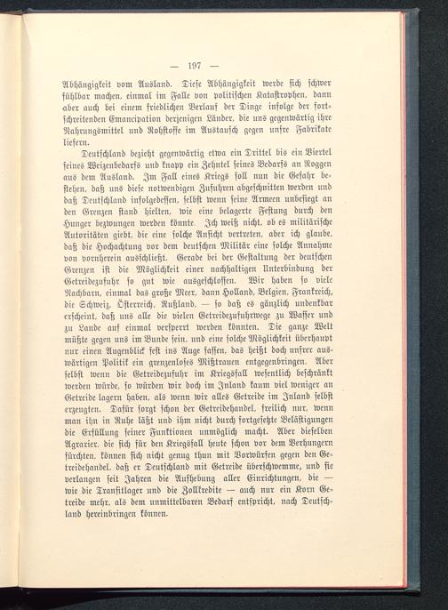 Abhängigkeit vom Ausland. Diese Abhängigkeit werde sich schwerfühlbar machen, einmal im Falle von politischen Katastrophen, dannober auch bei einem friedlichen Verlauf der Dinge infolge der fort-schreitenden Emancipation derjenigen Länder, die uns gegenwärtig ihreNahrungsmittel und Rohstoffe im Austausch gegen unsre Fabrikateliefern.