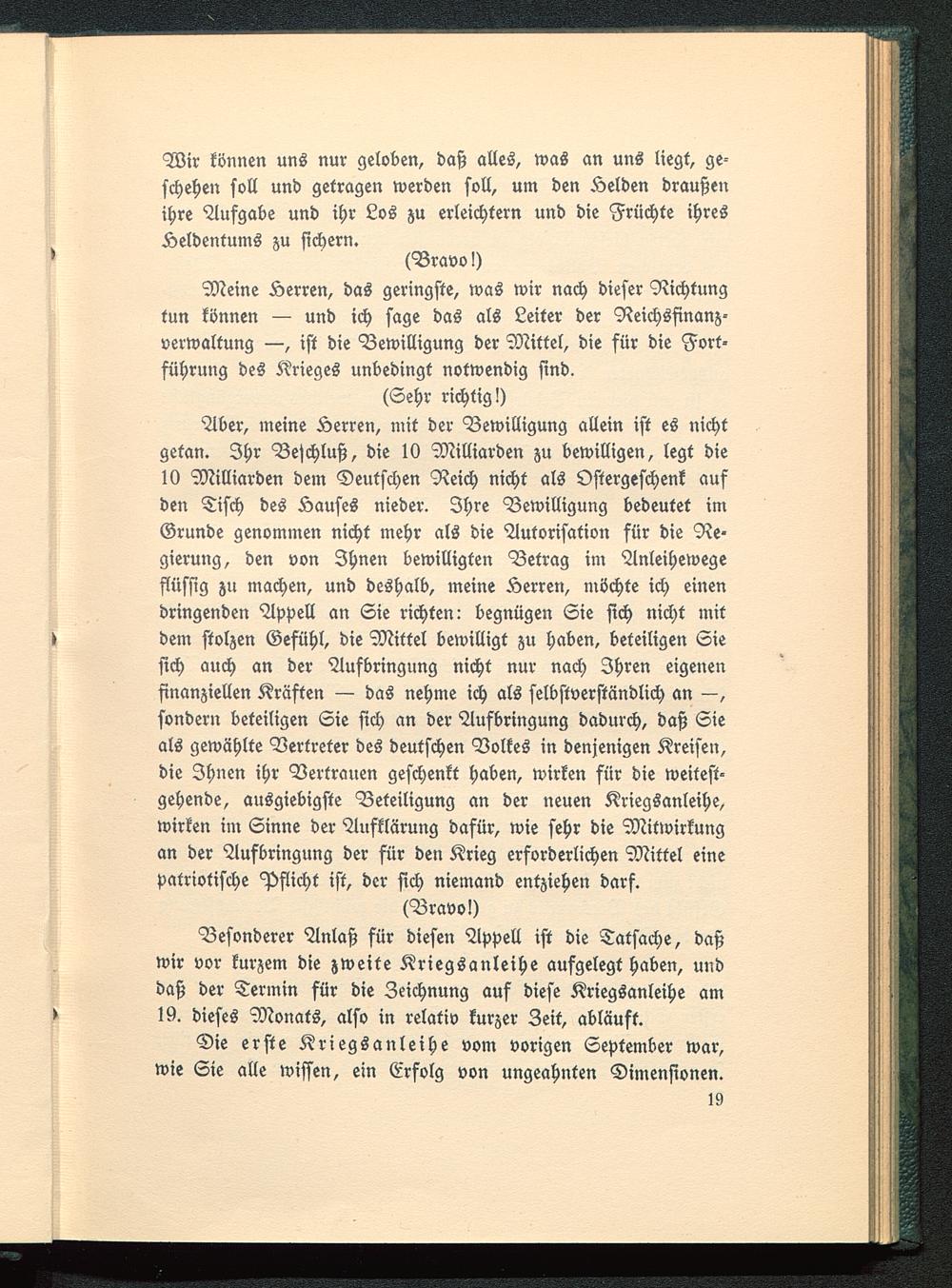 Die erste Kriegsanleihe vom vorigen September war,wie Sie alle wissen, ein Erfolg von ungeahnten Dimensionen.