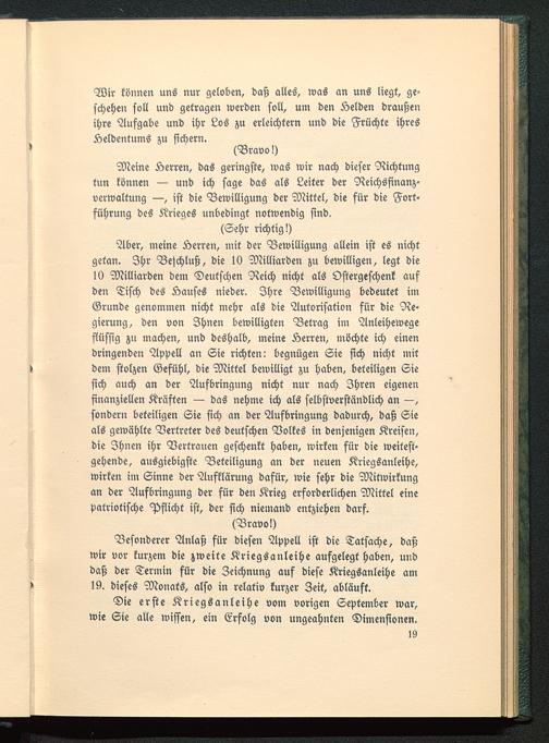 Besonderer Anlaß für diesen Appell ist die Tatsache, daßwir vor kurzem die zweite Kriegsanleihe aufgelegt haben, unddaß der Termin für die Zeichnung auf diese Kriegsanleihe am19. dieses Monats, also in relativ kurzer Zeit, abläuft.