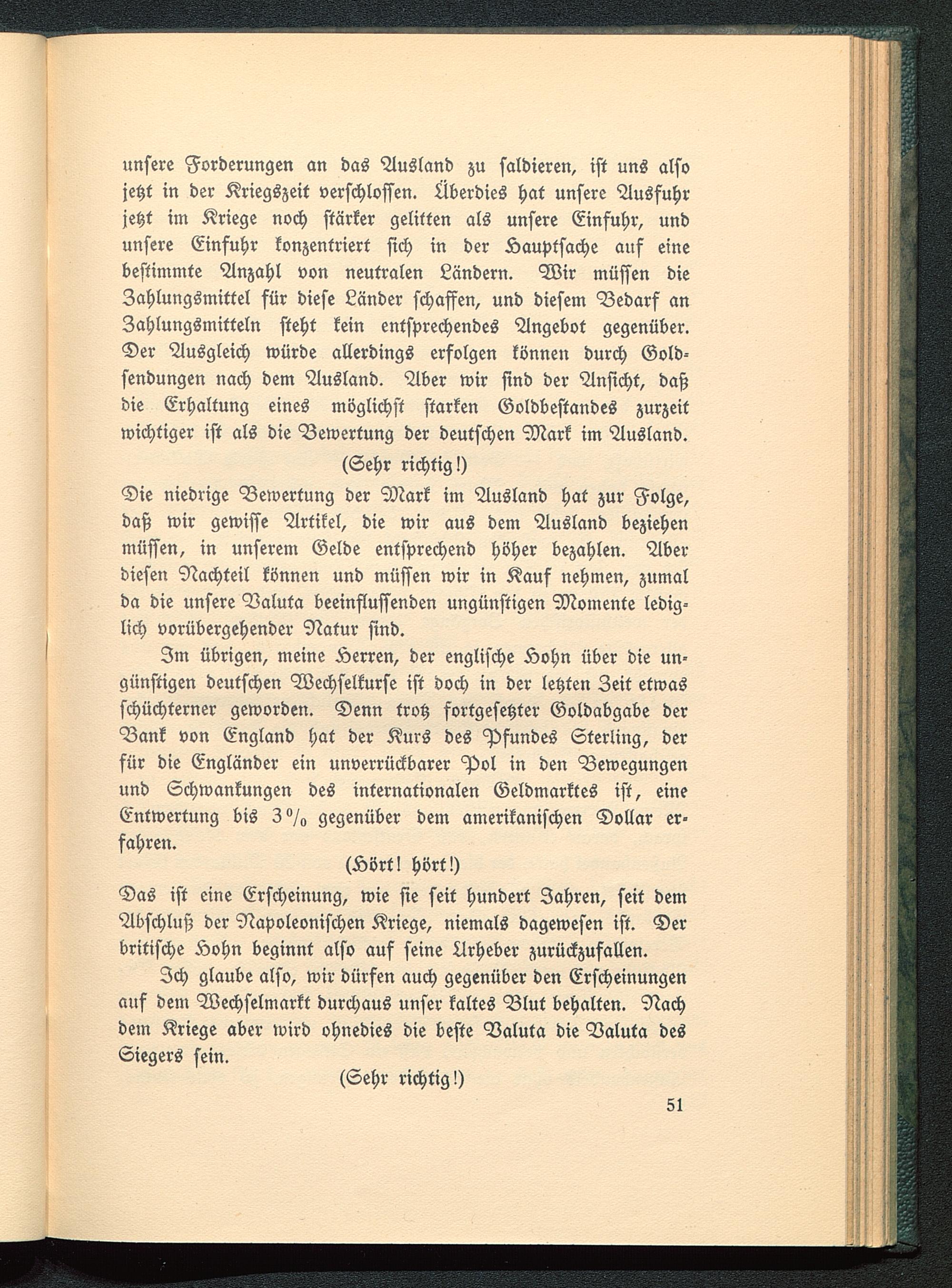 Ich glaube also, wir dürfen auch gegenüber den Erscheinungenauf dem Wechselmarkt durchaus unser kaltes Blut behalten. Nachdem Kriege aber wird ohnedies die beste Valuta die Valuta desSiegers sein.