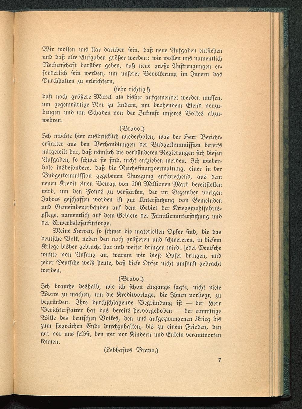 Wir wollen uns klar darüber sein, daß neue Aufgaben entstehenund daß alte Aufgaben größer werden; wir wollen uns namentlichRechenschaft darüber geben, daß neue große Anstrengungen er-forderlich sein werden, um unserer Bevölkerung im Innern dasDurchhalten zu erleichtern,