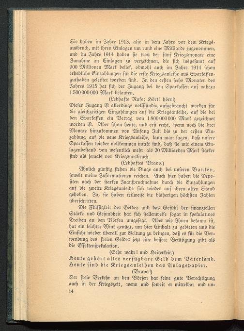 (Sehr wahr! und Heiterkeit.)Äeute gehört alles verfügbare Geld dem Vaterland.Äeute sind die Kriegsanleihen das Anlagepapier.