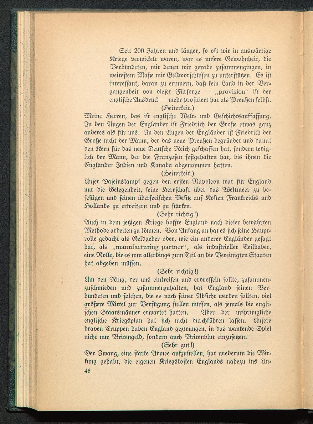 Meine Herren, das ist englische Welt-- und Geschichtsausfassung.In den Augen der Engländer ist Friedrich der Große etwas ganzanderes als für uns. In den Augen der Engländer ist Friedrich derGroße nicht der Mann, der das neue Preußen begründet und damitden Kern für das neue Deutsche Reich geschaffen hat, sondern ledig-lich der Mann, der die Franzosen festgehalten hat, bis ihnen dieEngländer Indien und Kanada abgenommen hatten.