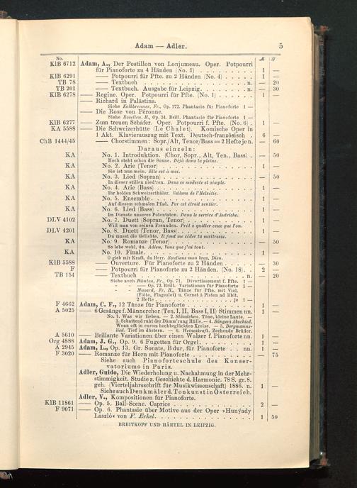 Siehe auch Pianoforteschule des Konser-vatoriums in Paris .Adler, Gnido, Die Wiederholung u. Nachahmung in der Mehr-stimmigkeit. Studie z. Geschichte d. Harmonie. 78 S. gr. 8.geh. (Vierteljahrsschrift für Musikwissenschaft) 1886. n.SieheauchDenkmälerd.Tonkunst in Österreich .Adler, V., Kompositionen für Pianoforte.