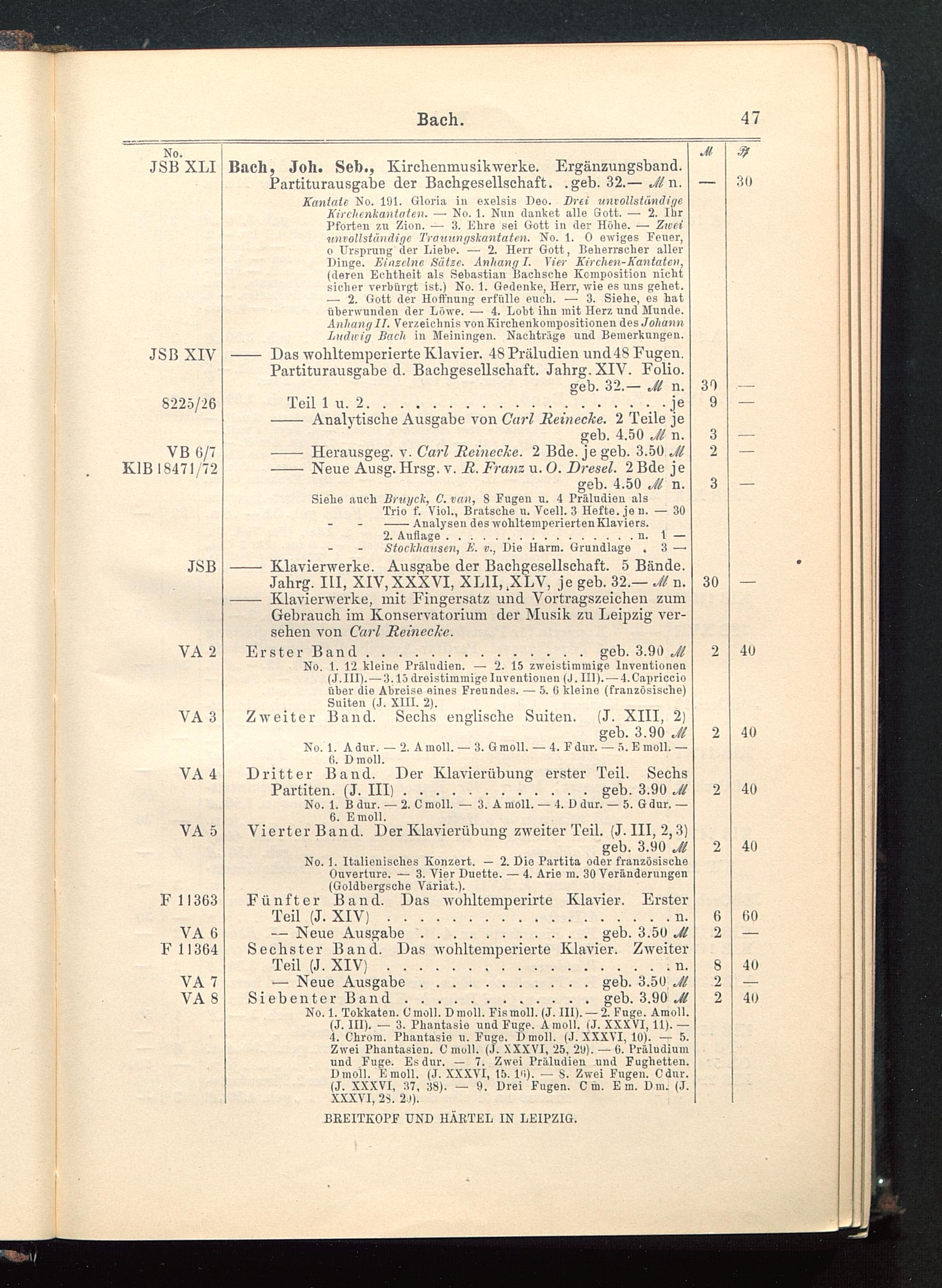 No. 1. 12 kleine PräIndien. — 2. 15 zweistimmige lnventionen(J.III). — 3.15 dreistimmige luventiouen (J. III). — 4.Capriccioüber die Abreise eines Freundes. — 5. (i kleine (französische)Suiten (J. XIII. 2).