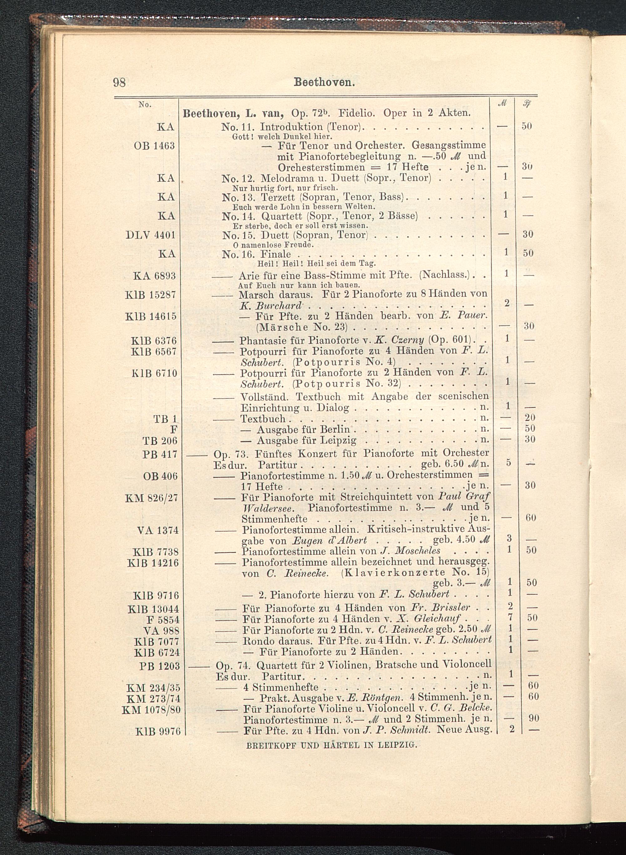 - Op. 73. Fünftes Konzert für Pianoforte mit Orchester
