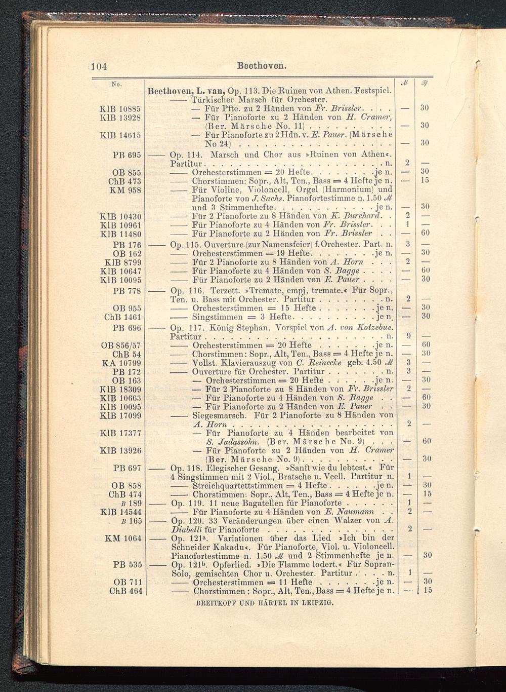 - Op. 114. Marsch und Chor aus »Ruinen von Athen«.