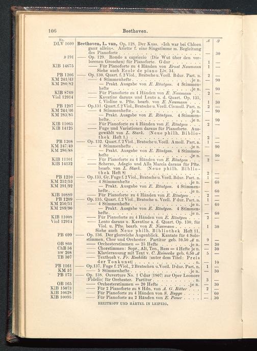 - Op. 130. Quart, f. 2Viol., Bratscheu.Vcell. Bdur. Part. n.