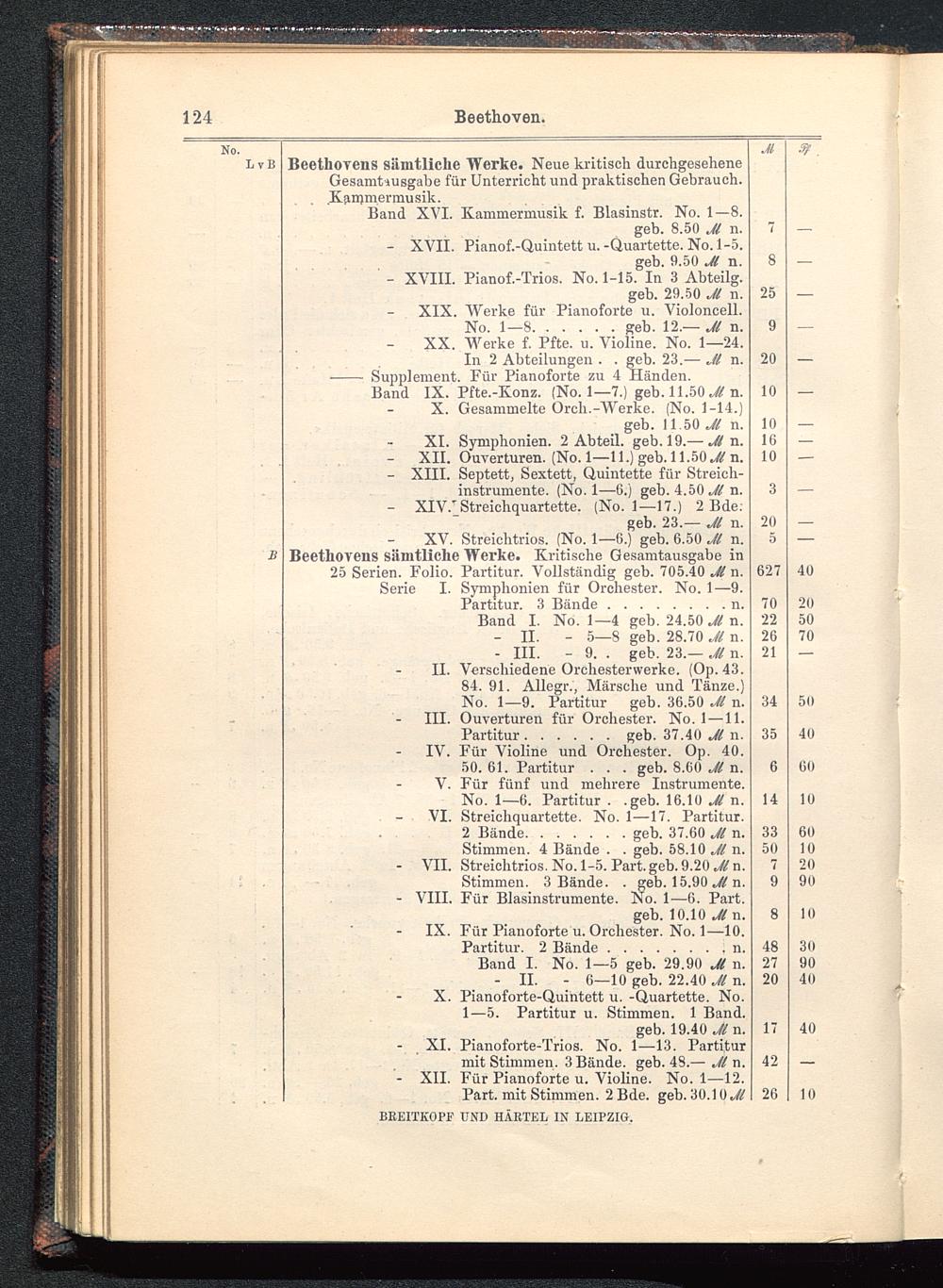 geb. 23.— Jl n.XV. Streichtrios. (No. 1—6.) geb. 6.50 Jl n.Beethovens sämtliche Werke. Kritische Gesamtausgabe in25 Serien. Folio. Partitur. Vollständig geb. 705.40 Jl n.Serie I. Symphonien für Orchester. No. 1—9.
