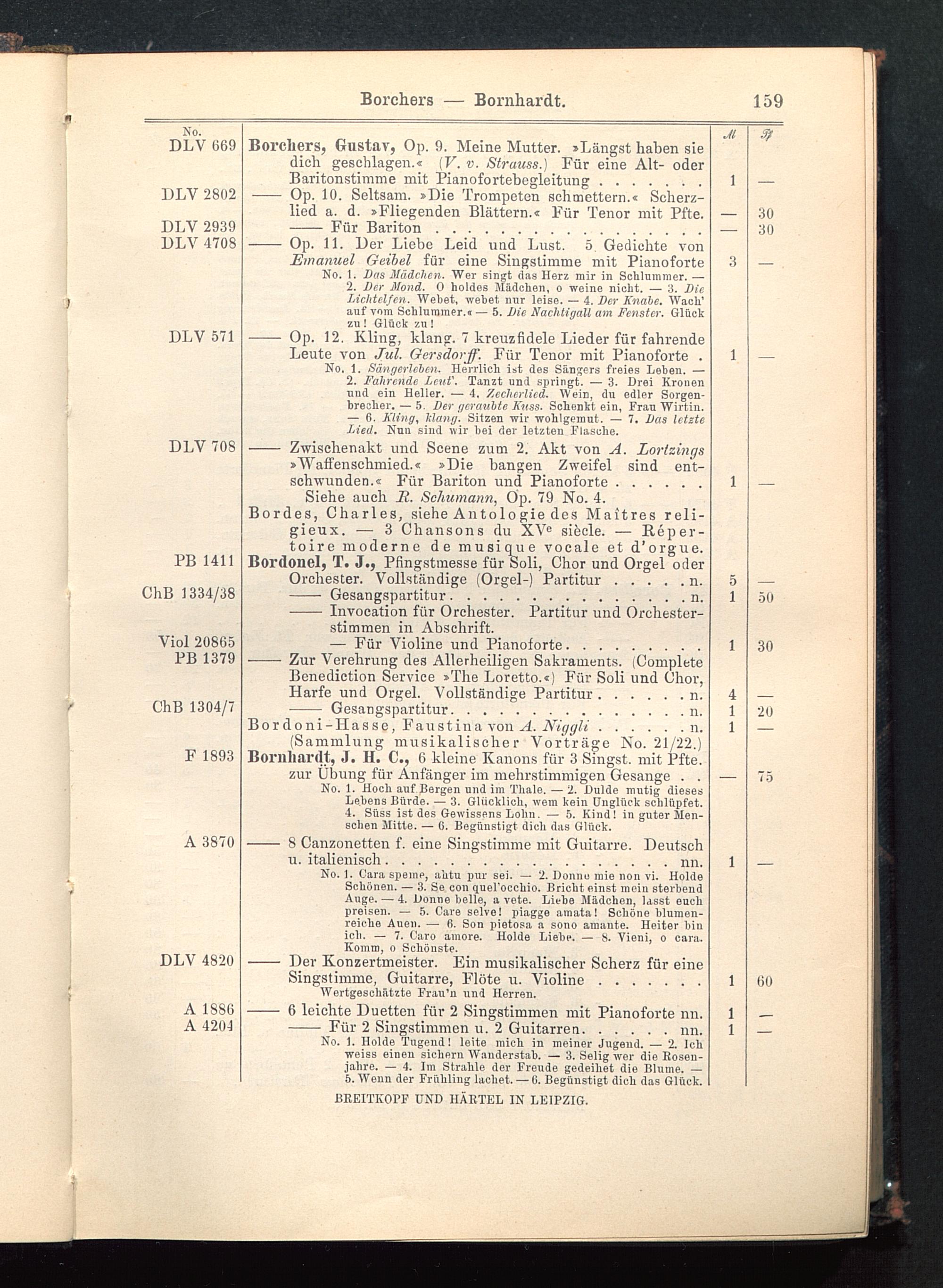 (Sammlung musikalischer Vorträge No. 21/22.)Bornliardt, J. H. C, 6 kleine Kanons für 3 Singst, mit Pfte.zur Übung für Anfänger im mehrstimmigen Gesänge . .No. 1. Hoch auf Bergen und im Thale. — 2. Dulde mutig diesesLebens Bürde. — 3. Glücklich, wem kein Unglück schlüpfet.