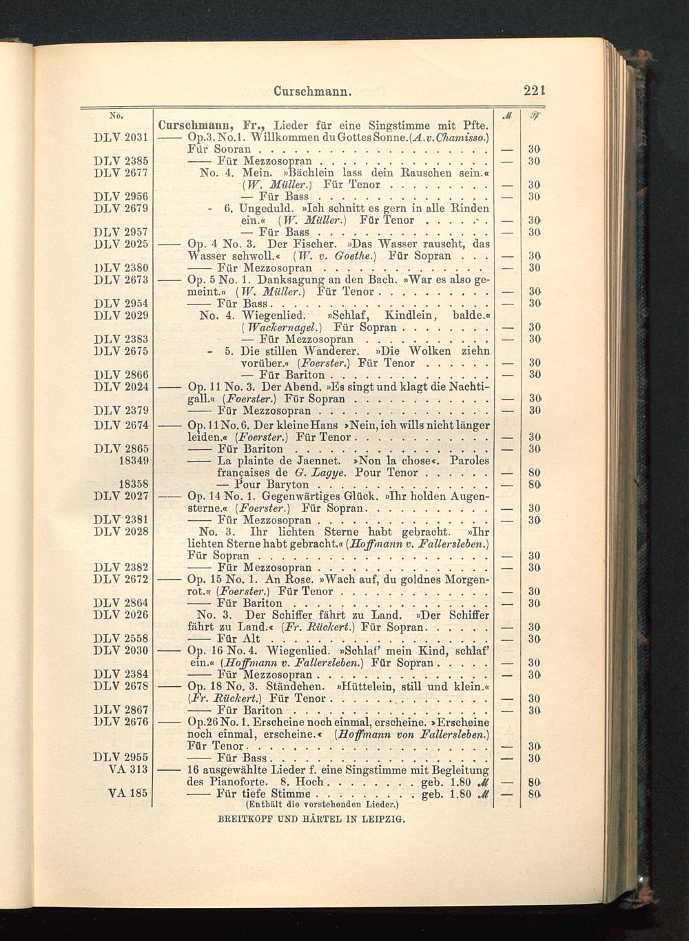 Curschmann, Fr., Lieder für eine Singstimme mit Pfte.