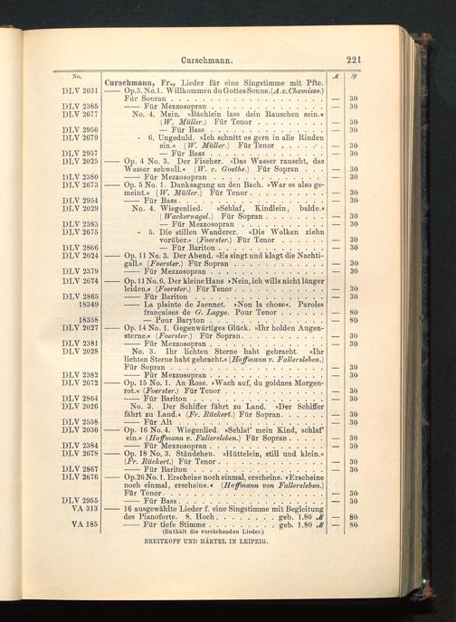 - Op. 11 No. 3. Der Abend. »Es singt und klagt die Nachti-gall.« (Foerster.) Für Sopran............