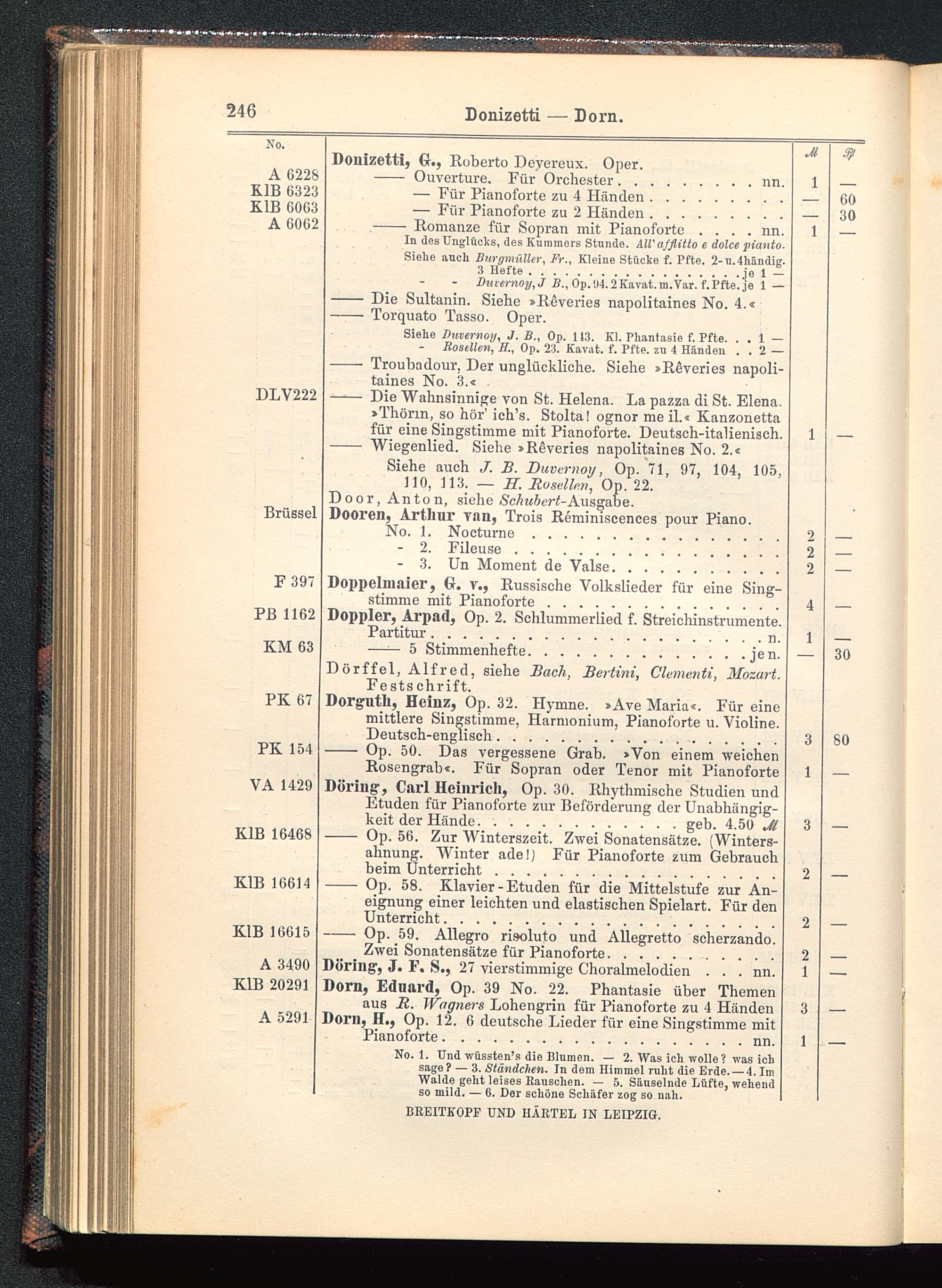 Siehe auch /. B. Duvcrnoy, Op. 71, 97, 104, 105,110, 113. — H. Busellen, Op. 22.Door, Anton, siehe Schubert- Ausgabe.Dooren, Arthur van, Trois Reminiscences pour Piano.