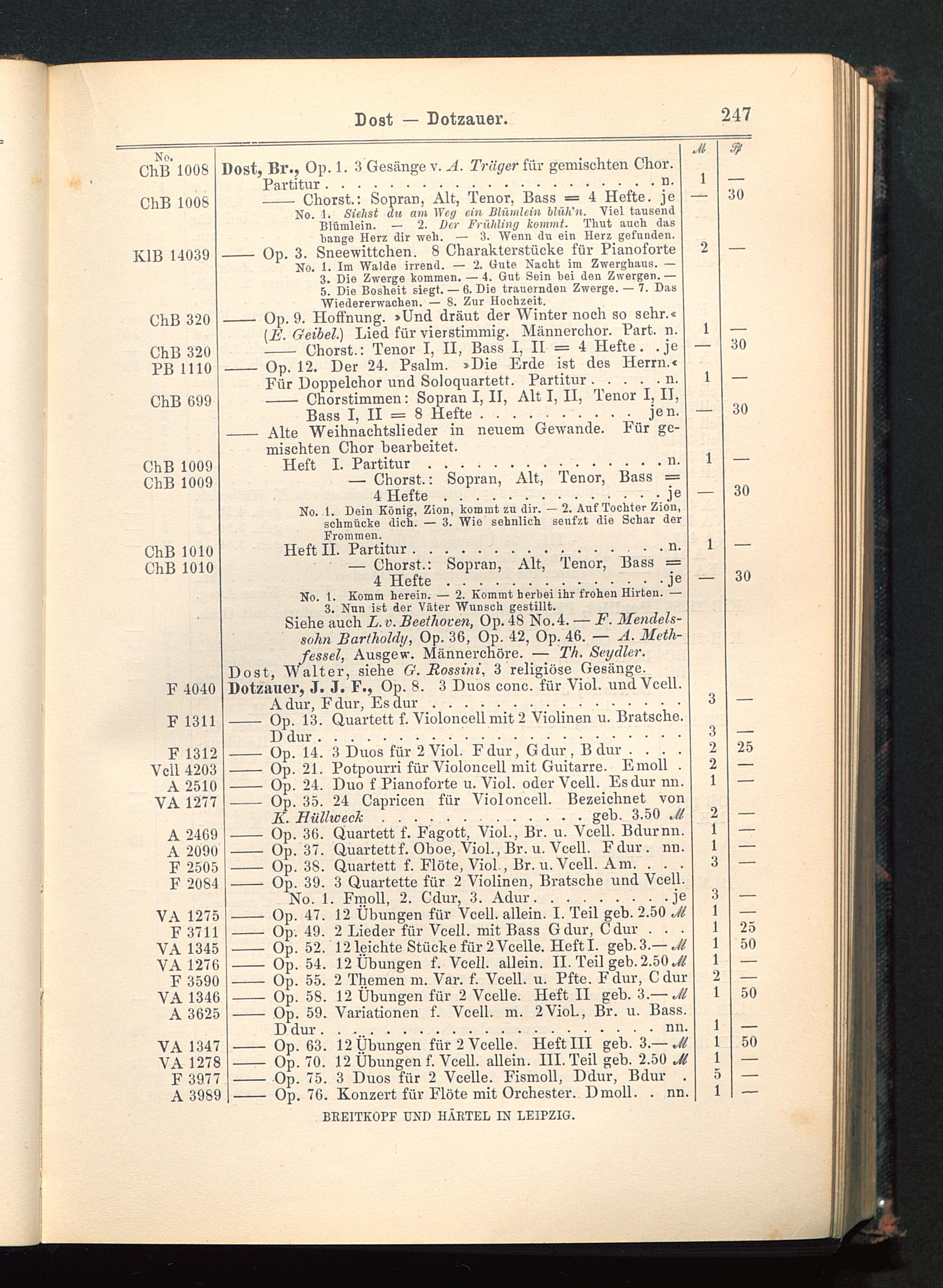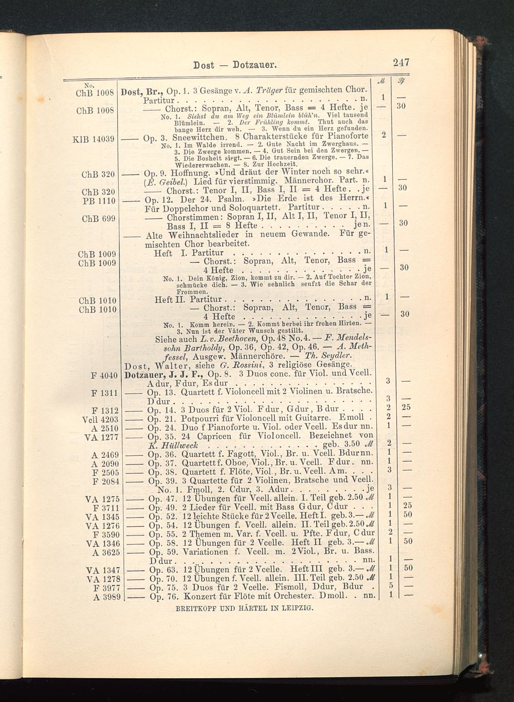 No. 1. Komm herein. — 2. Kommt herbei ihr frohen Hirten. —3. Nun ist der Väter Wunsch gestillt.Siehe auch L. v. Beethoven , Op. 48 No. 4. — F. Mendels-sohn Bartholdy, Op. 36, Op. 42, Op. 46. — A. Meth-fessel, Ausgew. Männerchöre. — Th. Seydler.Dost, "Walter, siehe G. Rossini, 3 religiöse Gesänge.Dotzauer, J. J. F., Op. 8. 3 Duos conc. für Viol. undVcell.