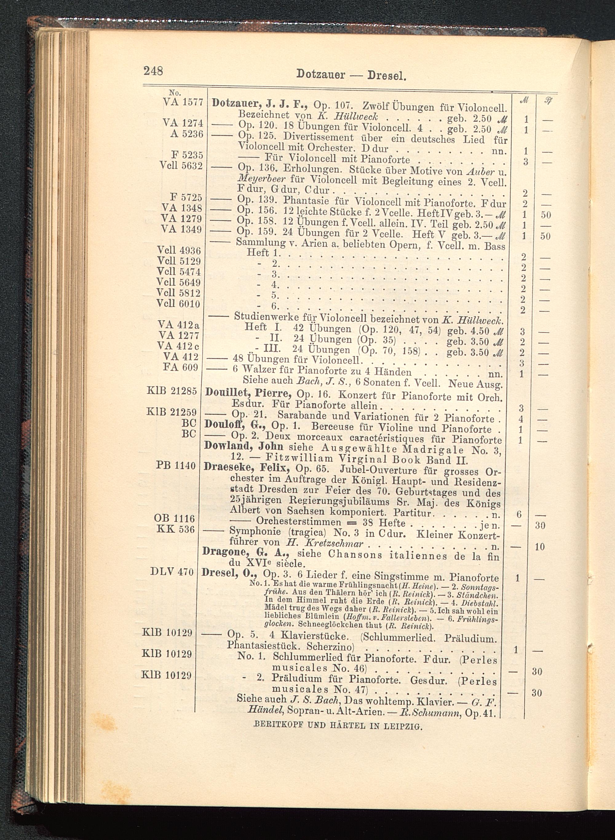 Siehe auch Bach, J. S., 6 Sonaten f. Vcell. Neue Ausg.Douillet, Pierre, Op. 16. Konzert für Pianoforte mit Orch.