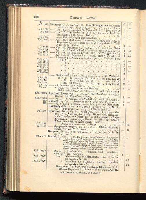 12. — Fitzwilliam Virginal Book Band II.Draeseke, Felix, Op. 65. Jubel-Ouverture für grosses Or-chester im Auftrage der Königl. Haupt- und Residenz-stadt Dresden zur Feier des 70. Geburtstages und des25jährigen Regierungsjubiläums Sr. Maj. des Königs