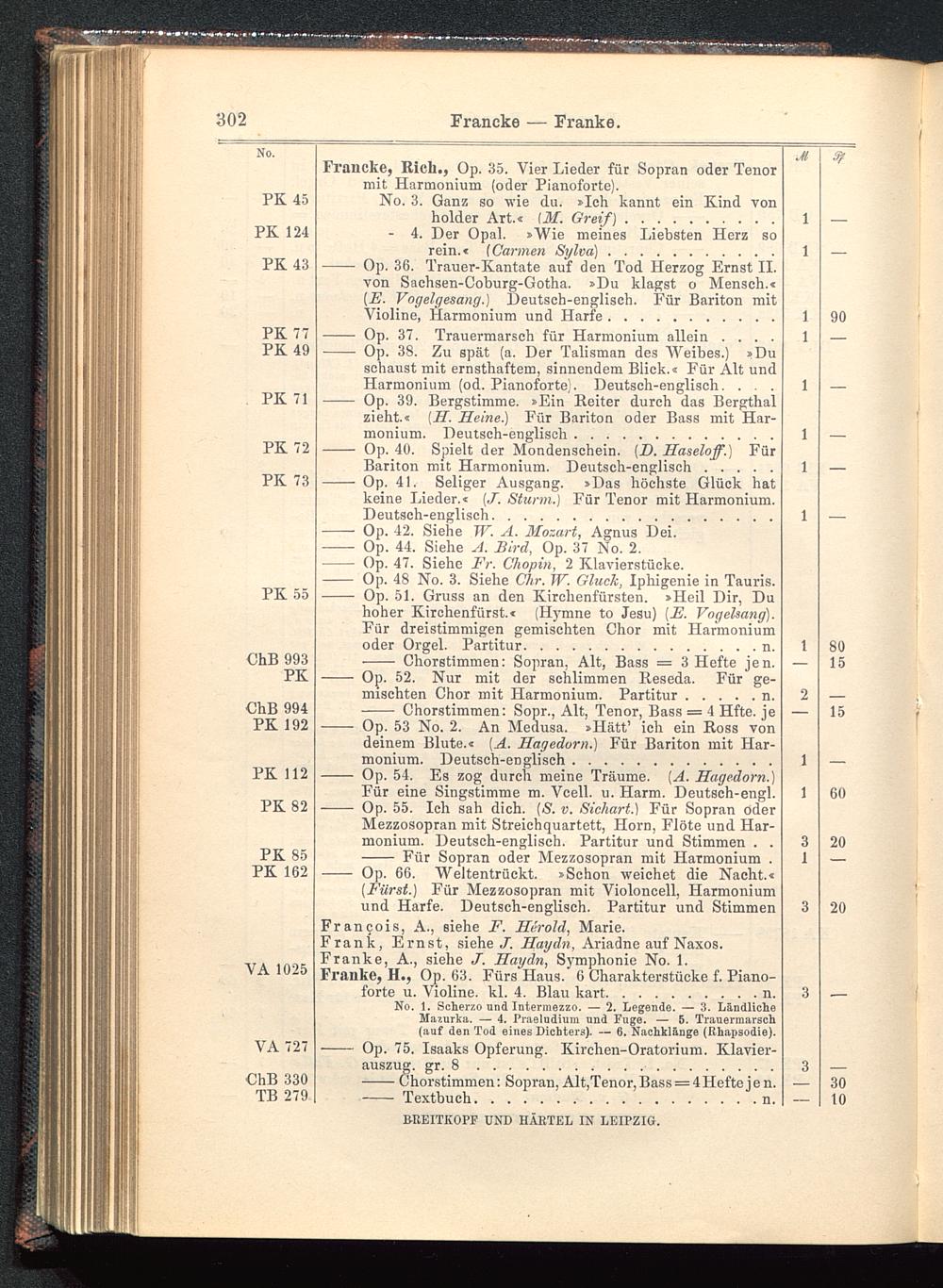 Francke, Bich., Op. 35. Vier Lieder für Sopran oder Tenormit Harmonium (oder Pianoforte).
