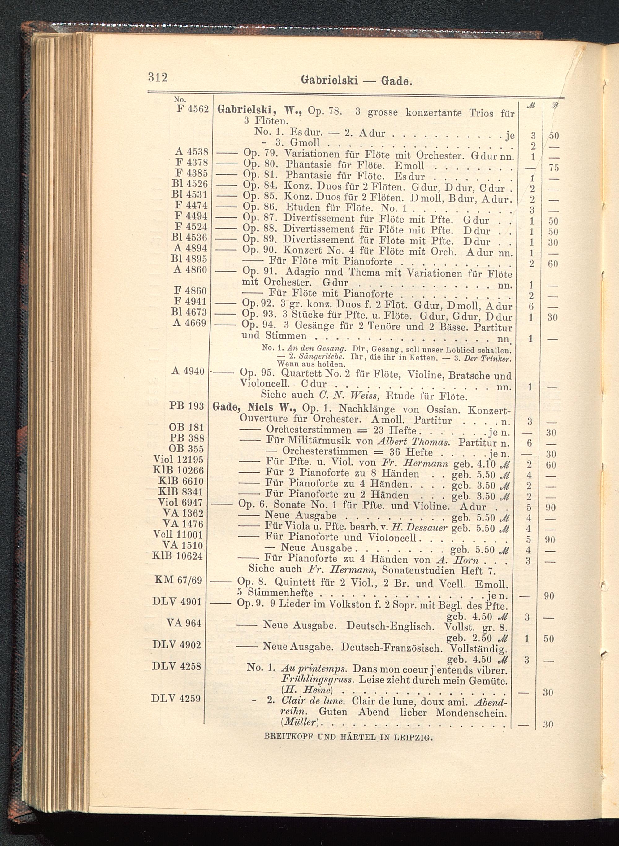 - Op. 85. Konz. Duos für 2 Flöten. Dmoll, Bdur, Adur.