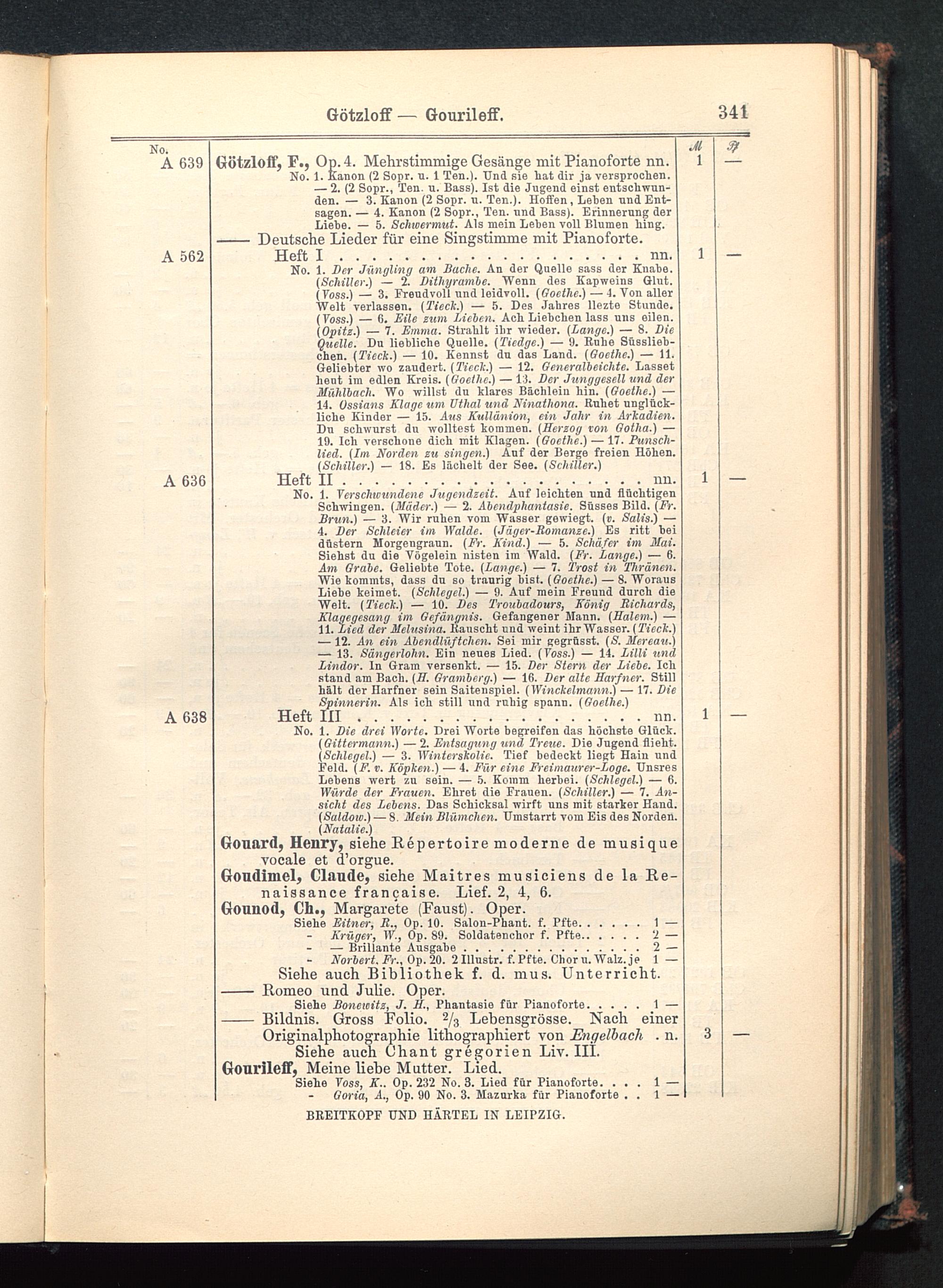 Götzloff, F., Op.4. Mehrstimmige Gesänge mit Pianoforte nn.