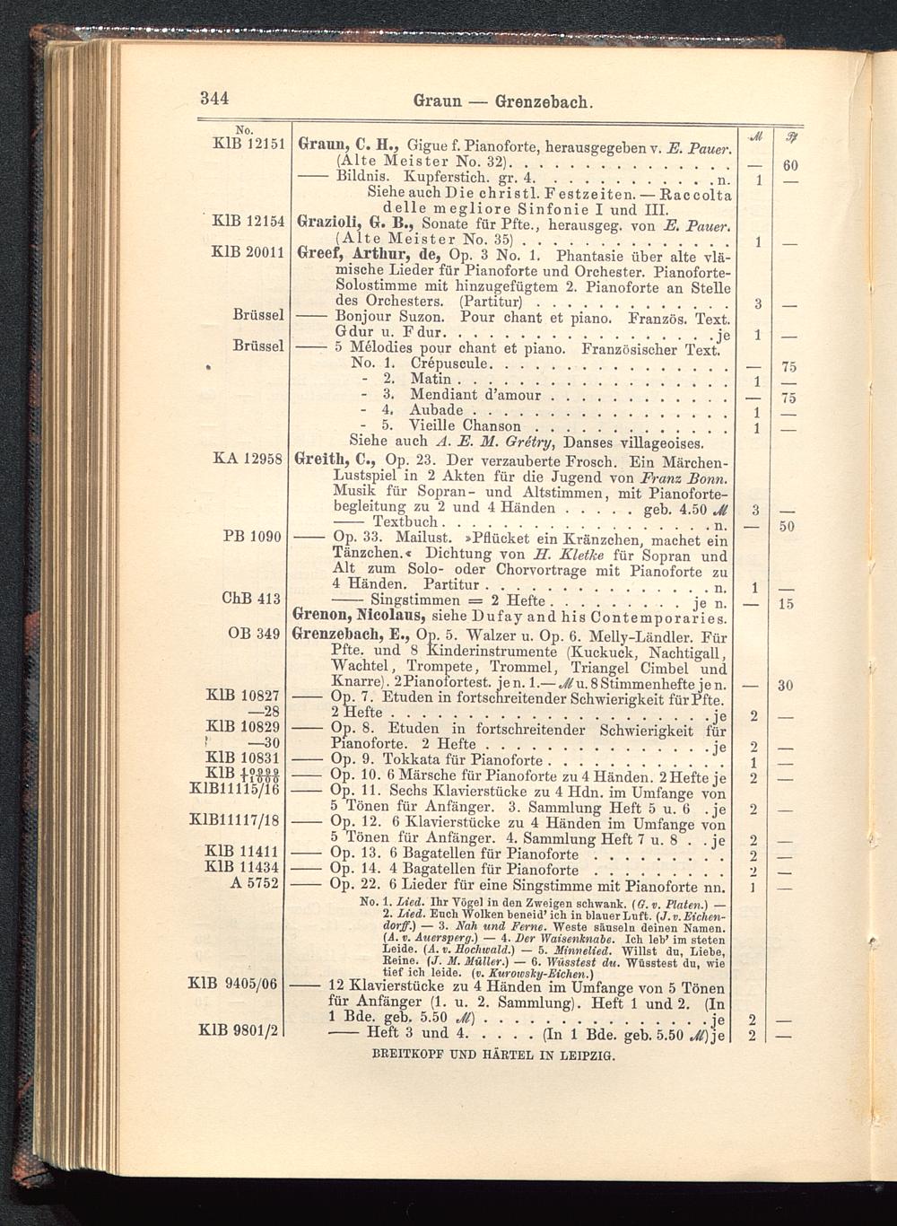 Grenzebach, E., Op. 5. Walzer u. Op. 6. Melly-Ländler. FürPfte. und 8 Kinderinstrumente (Kuckuck, Nachtigall,Wachtel, Trompete, Trommel, Triangel Cimbel undKnarre). 2Pianol'ortest. jen. 1.— JIm. 8 Stimmenhefte je n.