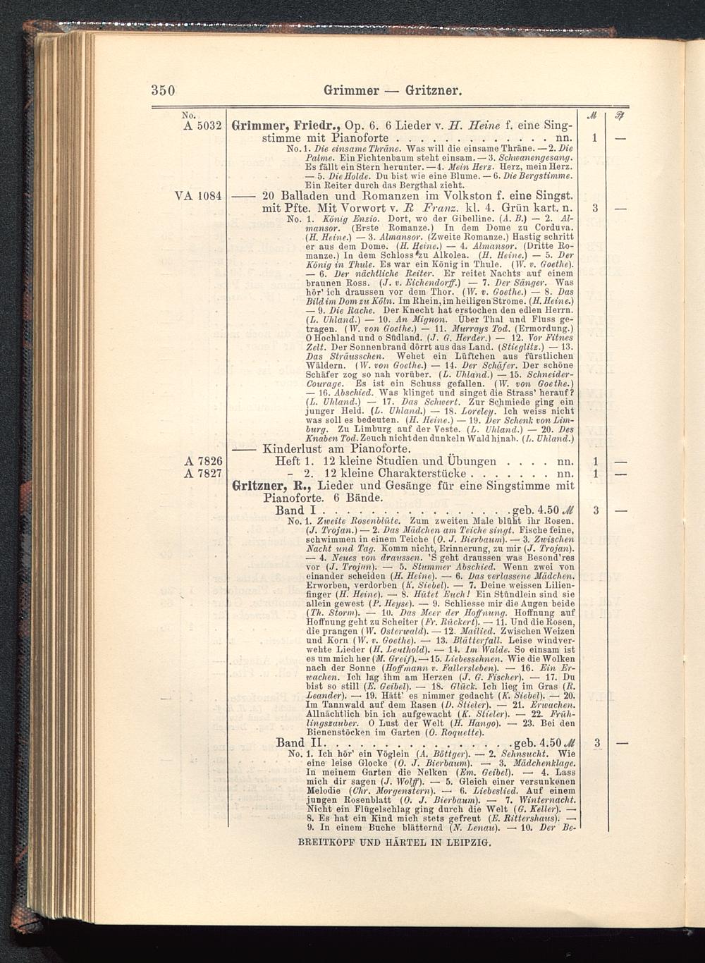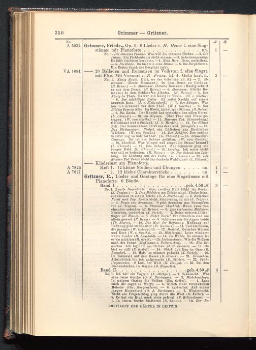 Grimmer, Friedr., Op. 6. 6 Lieder v. H. Heine f. eine Sing-stimme mit Pianoforte.............nn.