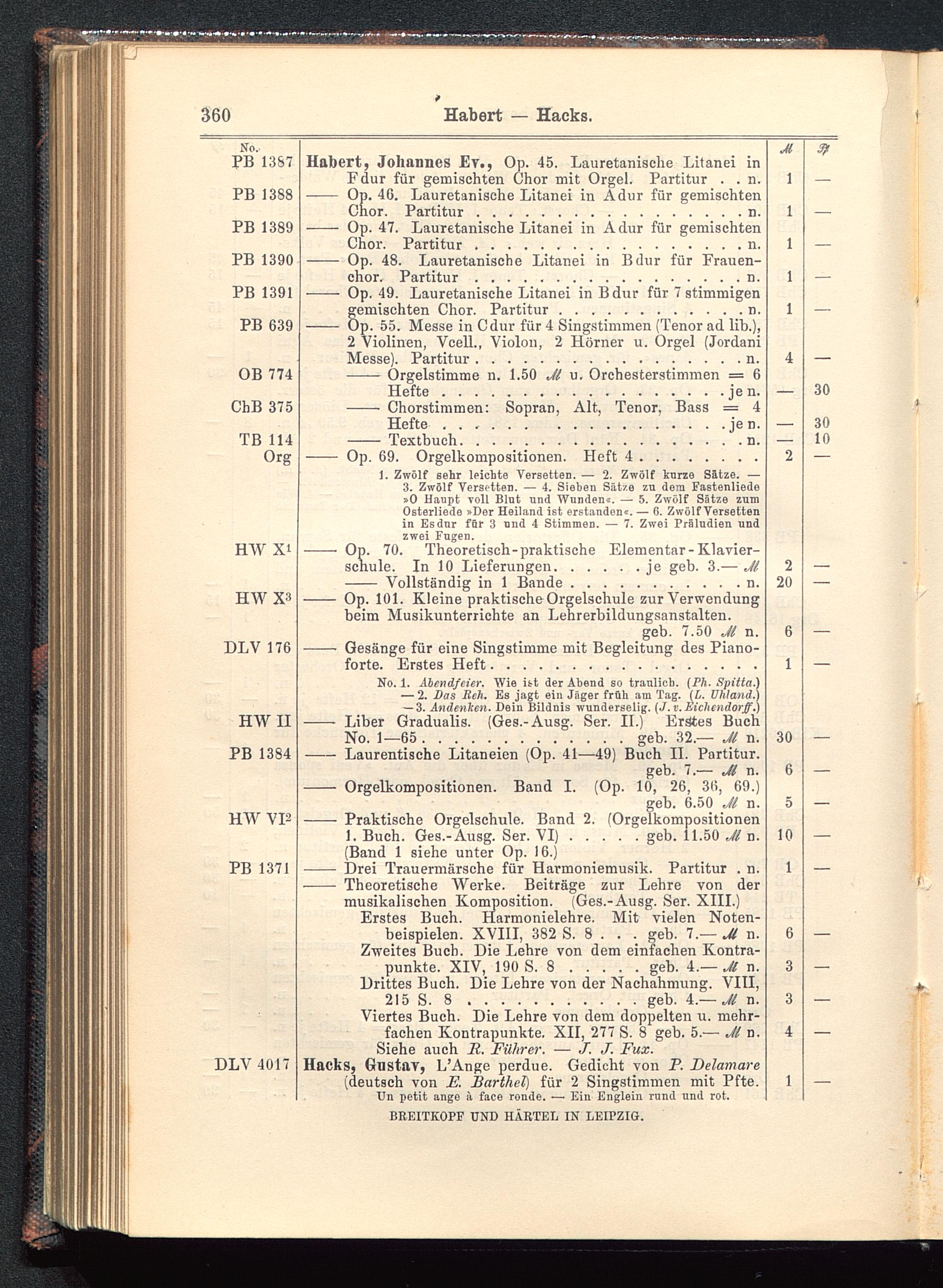 Habert, Johannes Er., Op. 45. Lauretaniscbe Litanei inFdur für gemischten Chor mit Orgel. Partitur . . n.