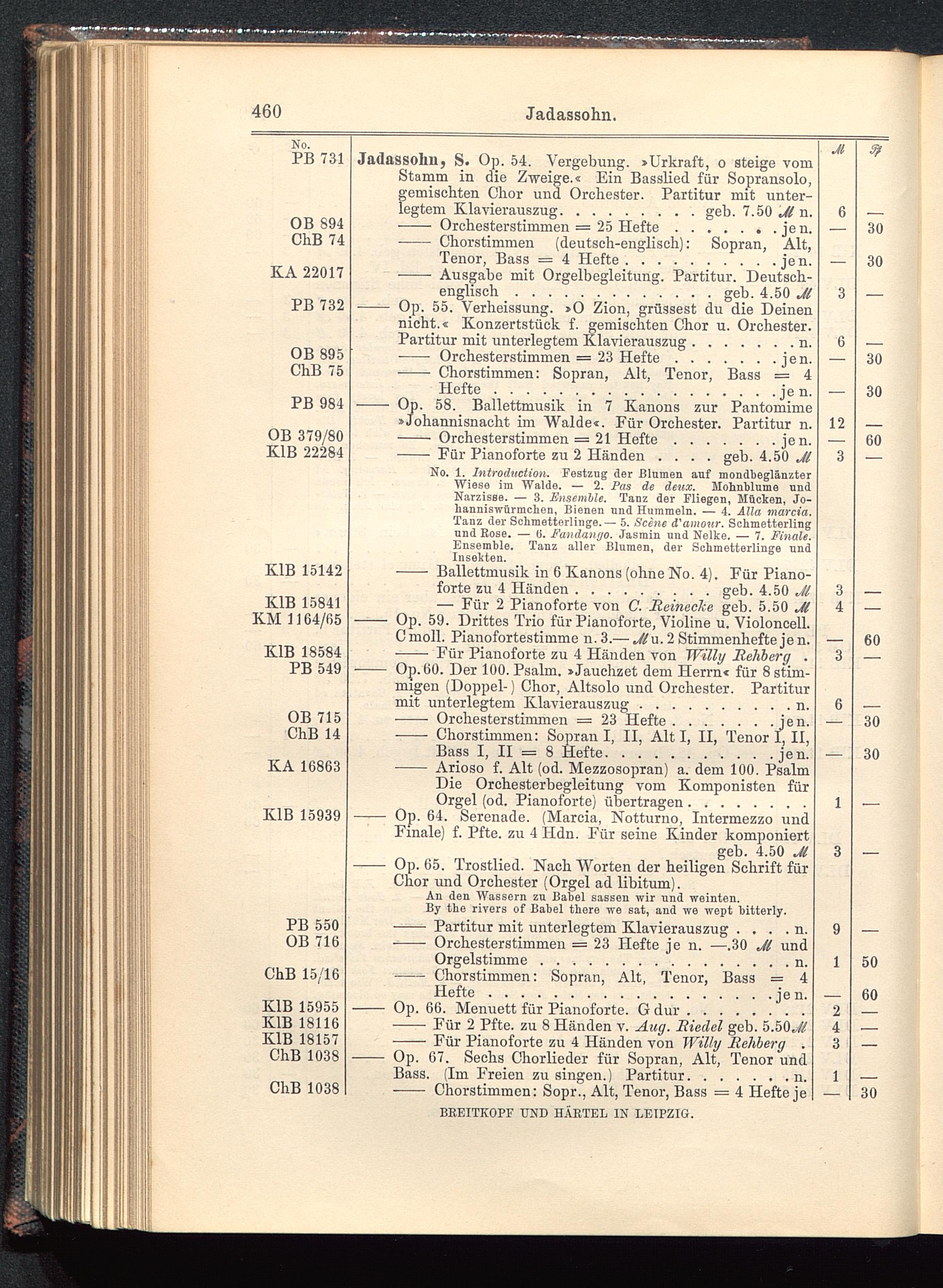 Jadassolm, S. Op. 54. Vergebung. >Urkraft, o steige vomStamm in die Zweige.« Ein Basslied für Sopransolo,gemischten Chor und Orchester. Partitur mit unter-legtem Klavierauszug.........geb. 7.50 Jl n.