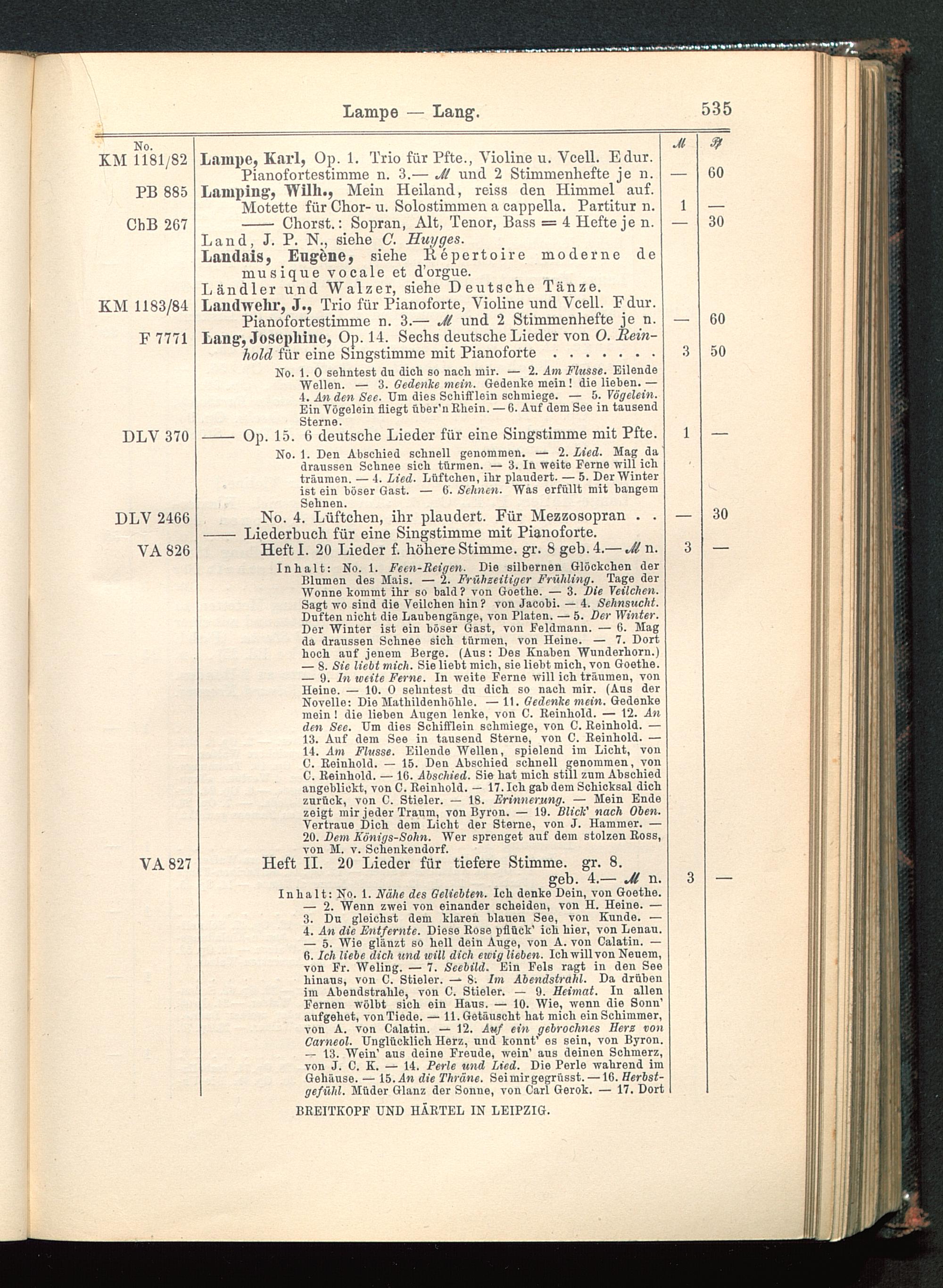 — 9. In weite Ferne. In weite Ferne will ich träumen, vonHeine . — 10. 0 sehntest du dich so nach mir. (Aus derNovelle: Die Mathildenhöhle. — 11, Gedenke mein. Gedenkemein ! die lieben Augen lenke, von C. Reinhold . — 12. Anden See. Um dies Schifflein schmiege, von C. Reinhold . —