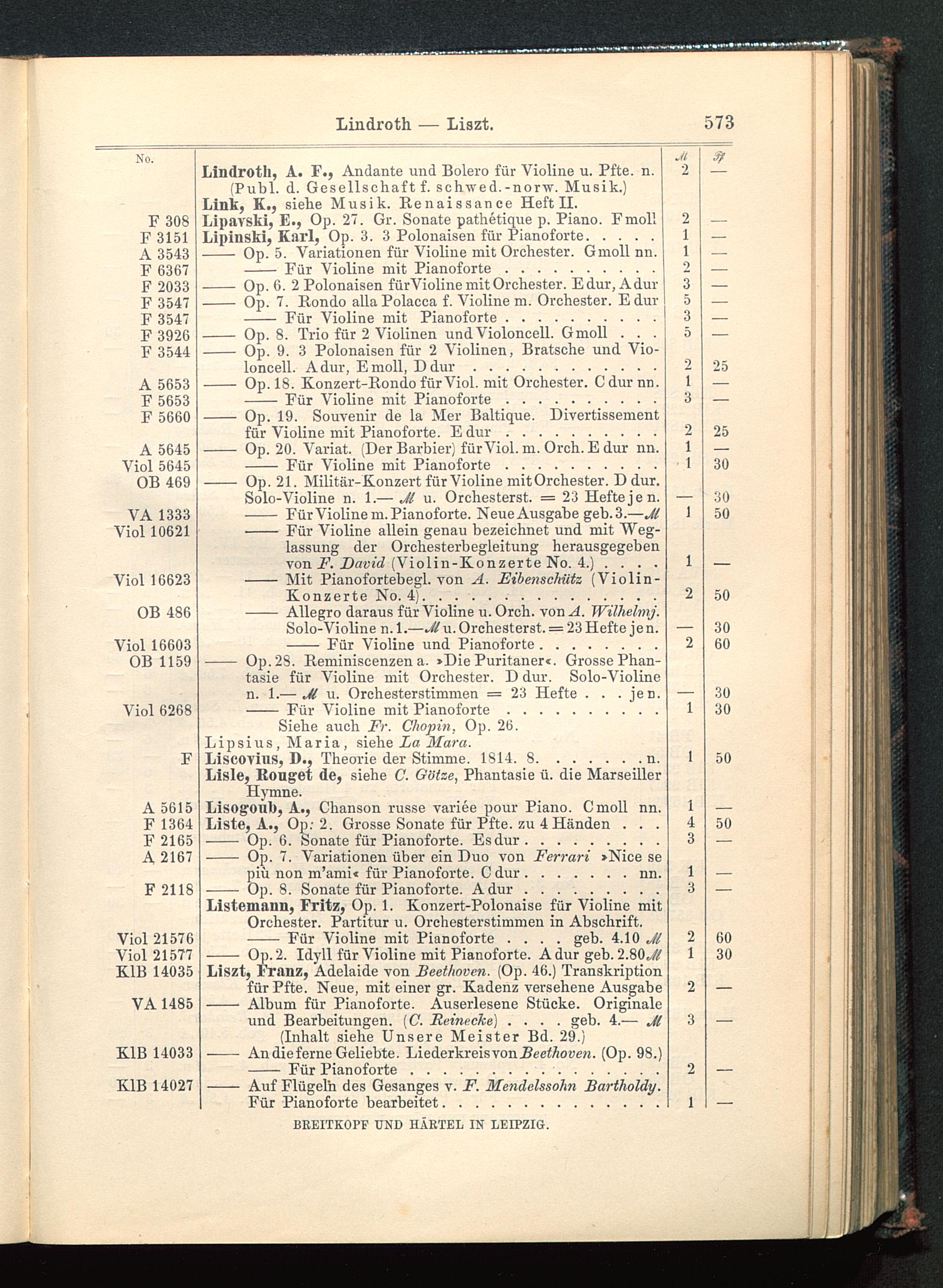 Solo-Violine n. 1.— Jl u. Orchesterst. = 23 Hefte je n.- Für Violine und Pianoforte........